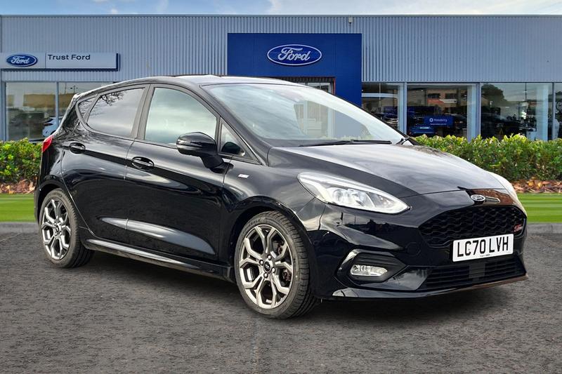 StockportInsurance Group 15, Bluetooth system, Electric power steering, Ford easy fuel, Ford SYNC 3 Navigation system incl 8 touchscreen, 7 speakers, FordPass connect, Apple carplay, android auto, voice control and emergency assistance, Rear parking distance sensors, Selectable drive modes (Normal, Sport, Track), Trip computer, Body colour bumpers, Body colour door handles, Body colour large rear spoiler, Body coloured electrically operated and heated door mirrors with side indicators, Cornering front fog lights, Electric front windows/one touch facility, Electric rear windows, LED Night signature to rear lights, Quickclear heated windscreen, Rain sensing wipers and auto dimming rear view mirror, Rear privacy glass, Rear wiper, Unique ST-Line upper grille & full bodystyling kit with ST-Line wing badges, 3 spoke flat bottomed leather steering wheel, 60/40 split folding rear seat, Adjustable head restraints, Black headlining, Boot carpet, Centre console with opening armrest, 2x cupholders, 12v and USB, Chrome inner door handles, Cloth upholstery, Footwell illumination, Front floor mats in velour, Front map reading lights, Front seat and rear pockets, Illuminated glovebox, Leather gaiter, Load area light, Manual 2 way passenger seat adjust, Manual 4-way driver seat adjust, Manual air conditioning, Overhead console with sunglasses holder, Pollen filter, Rake/reach adjustable steering wheel, Sensico wrapped steering wheel, Sports front seats, 3 point seatbelts on all rear seats, ABS+EBA, Curtain airbags,