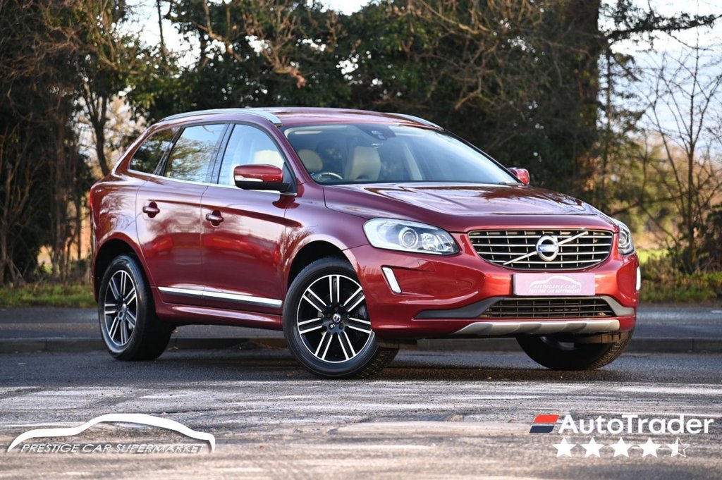 Prestige Car Supermarket in York presents this 2016 Volvo XC60 2.0 D4 SE Lux Nav in Flamenco Red with leather-faced Soft Beige upholstery and heated front seats. It sits on 18in Pan alloys and features xenon headlights with Active Bending, cornering function, LED day running lights, headlight cleaning, tunnel sensor, front and rear skid plates, silver roof rails, chrome window trim, power-fold mirrors with ground lights and a power-operated tailgate. The cabin is equipped with the Active TFT crystal driver display, 7in colour screen, Sensus Navigation with European mapping, Sensus Connect with web apps, HDD music storage, high-performance audio with 8 speakers, DVD player, Bluetooth, USB/AUX, front and rear theatre lighting, illuminated mirrors, Shimmer Graphite aluminium trim, power driver seat with memory, versatile 40-20-40 rear seats and a forward-folding front passenger seat. Comfort and usability are enhanced by electronic climate control with Air Quality System, B-pillar ventilation, cruise control, grocery bag holder, lockable load floor, multiple 12V sockets and rear park assist. Safety systems include City Safety, WHIPS, SIPS with dual-chamber airbags, inflatable curtains, roll stability control, traction control, IDIS, hill start assist, adaptive brake lights, tyre pressure monitoring, deadlocks, alarm, level sensor and immobiliser. A well-equipped 190 ps Euro 6 XC60 offering strong safety credentials, excellent specification and classic Volvo practicality. With over 1000 5* Reviews Prestige Car Supermarket proudly stands as the premier destination for discerning buyers seeking the best value in prestige vehicles across the UK. Our comprehensive offerings include meticulously prepared cars from our in-house preparation centre, each undergoing a rigorous multi-point inspection. To secure your desired vehicle, we offer a fully refundable £250 reservation facility accessible online or over the phone, Subject to T&Cs. Sales Executives are available to provide tailored walkaround videos upon request. While every effort is made to maintain accurate vehicle information, specifications may vary. we encourage customers to verify details with our Sales Executives. Recognised as a finalist in the Autotrader Retailer Awards and highly regarded for our commitment to exceptional customer service, we invite you to experience the excellence of Prestige Car Supermarket, Prestige Cars at affordable prices. .12V Socket - Front, 12V Socket - Rear, 18in Alloy Wheels - Pan, A-Pillar Parking Ticket Holder, ABS - Anti-Lock Brake System, Access to a Range of Selected Web Apps and Internet Browser, Active TFT Crystal Drivers Information Display, Adaptive Brake Lights, Air Quality System, Airbags - Drivers Dual Stage, Airbags - Dual Chamber SIPS, Airbags - Passenger Dual Stage, Airbags - SIPS - Side Impact Protection System, Amplifier 45W x4, Annual Map Updates x2, Anti-Theft Alarm, Armrest - Front Centre with Storage, Armrest - Rear Centre with Storage, B-Pillar Ventilation, Bluetooth Handsfree System, Bright Metal Luggage Compartment Threshold, Central Locking - Remote, Chrome Window Trim, City Safety, Climate Control - Electronic, Colour Display Screen - 7in, Cruise Control, Cupholders - Front, Cupholders - Rear, DAB - Digital Audio Broadcasting Radio, DVD Player, Deadlock System, Door Mirrors - Body Coloured, Door Mirrors - Power Folding with Ground Lights, Door Sill Tread Plates - Front, Dynamic Chassis, Dynamic Stability Control, EBA - Emergency Brake Assistance, EBD - Electronic Brake Distribution, Electric Windows - Front and Rear, European Mapping, Exhaust Pipes - Twin, Forward Folding Front Passenger Seat, Frameless Auto Dimming Rear View Mirror, Front Skid Plate, Front Theatre and Footwell Lights, Front and Rear Reading Lights, Gear Knob - Leather, Grocery Bag Holder, Hard Disk Drive for Music Storage, Headlight Cleaning System, Headlights - Active Bending, Headlights - Cornering Light Function, Headlights - Levelling System, Headlights - Tunnel Sensor, Headlights - Xenon, Headlining - Quartz Grey, Height and Reach Adjustable Steering Column, High Level LED Brake Light, High Performance Audio System, Hill Start Assist, Home Safe and Approach Lighting, IC - Inflatable Curtains, IDIS - Intelligent Driver Information System, ISOFIX Child Seat Preparation - Rear, Illuminated Driver and Passenger Vanity Mirrors, Immobiliser, Information Centre, Interior Trim - Shimmer Graphite Aluminium, LED Day Running Lights, Level Sensor, Locking Wheel Nuts, Luggage Compartment - Cover, Luggage Compartment - High Level Anchor Points x4, Luggage Compartment - Lockable Load Floor, Luggage Compartment - Net, Passenger Airbag Cut-Off Switch, Power Driver Seat with Memory for Seat and Exterior Mirrors, Power Operated Tailgate, Power Parking Brake, Power Steering System, RDS-TMC - Traffic Message Channel, RSC - Roll Stability Control, Rain Sensor, Rear Park Assist, Roll Over Protec