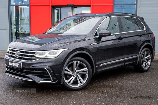 Londonderry0 Previous Owners, 2023 Volkswagen Tiguan R Line DSG Automatic, comes with 2 keys and has covered 55714 miles finished in metallic black paint. some feature highlights include Leather-wrapped heated multi-function sports steering wheel with touch control and shift paddles, Driver Assistance package plus, Driving Profile Selection with ECO function, Sports suspension, Navigation system including streaming and Internet, Safety features including Adaptive Cruise Control ACC, Winter pack, half leather seats, a really great specification vehicle with warranty and serviced included.