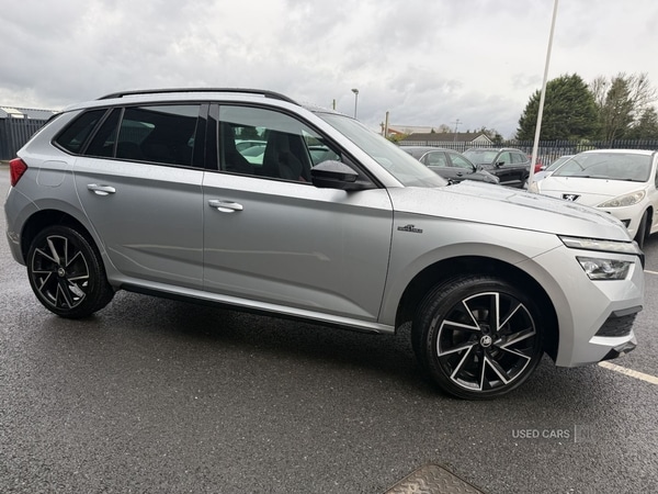 Insurance Group 14, April 2022 first registered. 3 keepers from new. Sold by us to the last keeper in July 2025. Skoda Kamiq MONTE CARLO 1.0 TSi 110bhp petrol with 6-speed manual gearbox. Brilliant silver metallic paint. 44,506 miles. CO2 129g/km. Due first MOT on 15/04/2026. Full Skoda service history: Oil service completed by us at 41,256 miles on 23/10/2025; Safety inspection completed by us at 33,691 miles on 04/07/2025 + rear brake discs and brake pads; Oil service at 15,874 miles on 03/2023