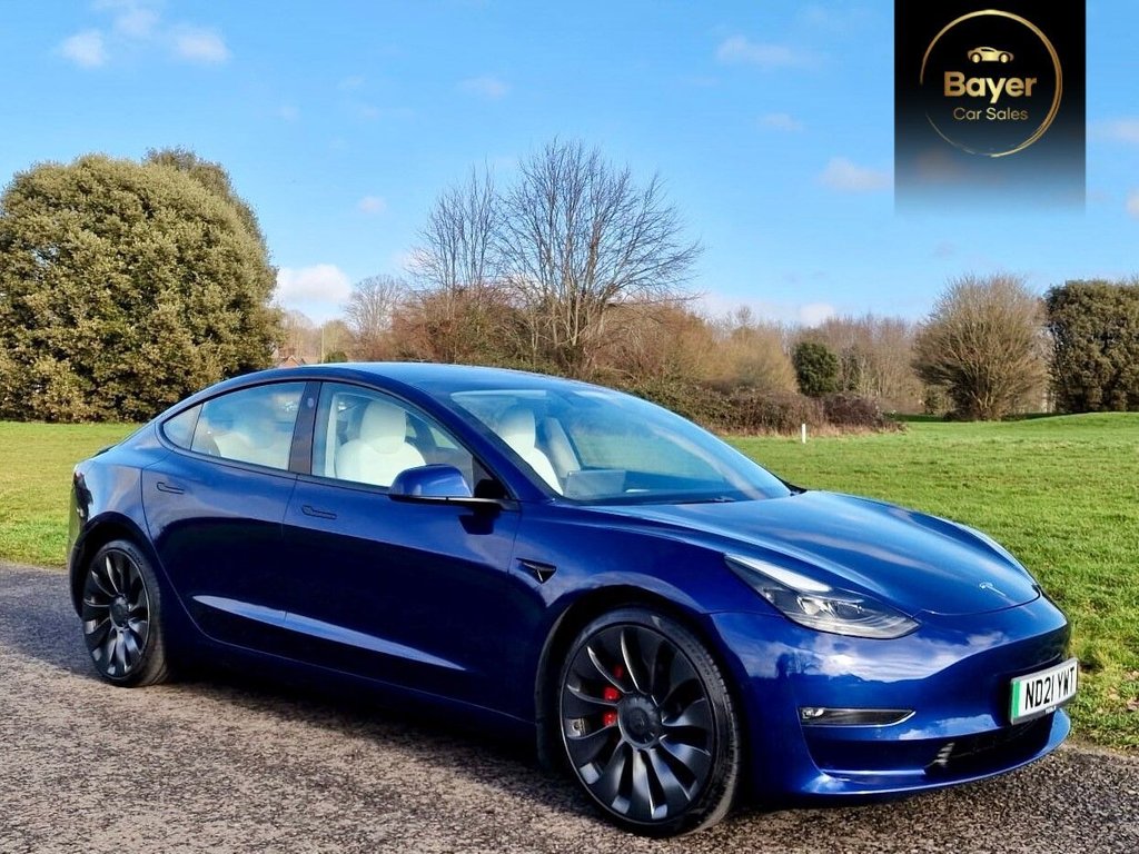 Fareham1 Previous Owner, REFRESH WITH ENHANCES AUTO PILOT! EXCELLENT SPEC AND VALUE This 2021 Tesla Model 3 Performance offers an exceptional driving experience with its all electric, four wheel drive system. Finished in a striking black and white interior crafted from premium engineered materials, this model boasts a substantial 82 kWh battery, providing a new vehicle range of up to 340 miles. Convenience is key with keyless entry and remote control via the Tesla app, alongside two inductive charging mats for smartphones, ensuring your devices stay powered. Enjoy seamless connectivity with the integrated Bluetooth system. The performance variant truly stands out, accelerating from 0 to 60 miles per hour in an astonishing 3.1 seconds, demonstrating its superior capability compared to other vehicles. This impressive acceleration is complemented by the vehicles impressive range of 340 miles when new, highlighting its efficiency and long distance potential. Recharging is straightforward, with a full charge at home on a 7kW charger taking approximately 12 hours, while rapid charging on public networks can take you from empty to 80% in as little as 26 minutes. Enhanced Autopilot is also included, offering advanced driver assistance features. A little bit about us and how we work. We are a family business who have been supplying main dealerships for over 20 years. We have a very good supply of used cars that are in the main purchased directly from large PLC companies or main dealerships. We operate on a high turnover and small margin making our vehicles the best priced in the current market. With this in mind we don?t discount as we simply don?t have big margins to do so but more the fact we prefer to be completely transparent and believe everyone deserves to be offered the same great prices. We operate on an appointment basis so we can ensure the vehicle is ready. Please give us a call and pop in for a coffee..12-Way Power Adjustable Front and Rear Heated Seats, 15in Touchscreen with Onboard Maps and Navigation, 2 Zone Climate Control, 20in Alloy Wheels - Performance, 3x3 Point Rear Seat Belts, 60-40 Split Folding Rear Seats, ABS - Anti-lock Braking System, Adaptive Cruise Control, Adaptive Steering, Additional USB-A Port - Glove Compartment, Air Conditioning, Airbags - Curtain, Airbags - Driver, Airbags - Passenger, Airbags - Side, Aluminium Alloy Pedals, Ambient - Interior Lighting, Audio Remote Control, Auto Dimming - Power Folding - Heated Side Mirrors, Automated High-Beam Assist, Automatic Emergency Braking, Autopilot Function, Blind Spot Information, Bluetooth Connection, Body Coloured Bumpers, Carbon Fibre Spoiler, Centre Console with Storage - 4 USB Ports and Docking for 2 Smartphones, Collision Avoidance, Custom Driver Profiles, Daytime Running Lights - LED, Deep Blue, Digital Radio, DVD, Electric Hinged Side Doors - Front, Electric Hinged Side Doors - Rear, Electrically Adjustable Drivers Seat, Electrically Adjustable Passenger Seat, Electrically Adjustable Steering Column - Tilt-Telescopic, Electronic Stability Control and Traction Control, Enhanced Autopilot, Exterior Satin Black, Fixed Panoramic Glass Roof, Front Armrest, Front Cross Traffic Camera, Front Electric Windows, Front Fog Lights, Front Head Restraints, Front Parking Sensor, Graphite Finish Seat Controls, Heat Pump, Heated Steering Wheel, Height Adjustable Drivers Seat, In-Car Internet Streaming Music and Media, Inductive Charging Mats - Two Smartphones, Interior Carpeting, Interior Floor Mats, Internet Browser, Internet Connection, Isofix Child Seat Anchor Points, Keyless Entry and Remote Control with App, Keyless Go, Lane Departure Warning, LED Foglights, LED Headlights, Location-Aware Automatic Garage Door Opener, Map and Reading Lights, Matt Finish Trim, Media Storage, Metalised Scroll Wheels - Steering Wheel, Mobile Phone App Interface, Navigation System, Non-Safety-Critical Software Updates over Cellular, OEM Sound System, Park Assist Camera, Performance Brake Calipers, Power Steering - Speed Sensitive, Powerlift Trunk, Premium Audio - 14 Speakers - 1 Subwoofer - 2 Amps and Immersive Sound, Premium Engineered Material - Black and White, Radio - AM-FM - Internet Streaming, Rear Cross Traffic Camera, Rear Electric Windows, Rear Headrests, Rear Light - LED, Rear Parking Sensor, Remote Central Locking, Reverse Parking Aid, Satellite-View Maps with Live Traffic Visualisation and Navigatio
