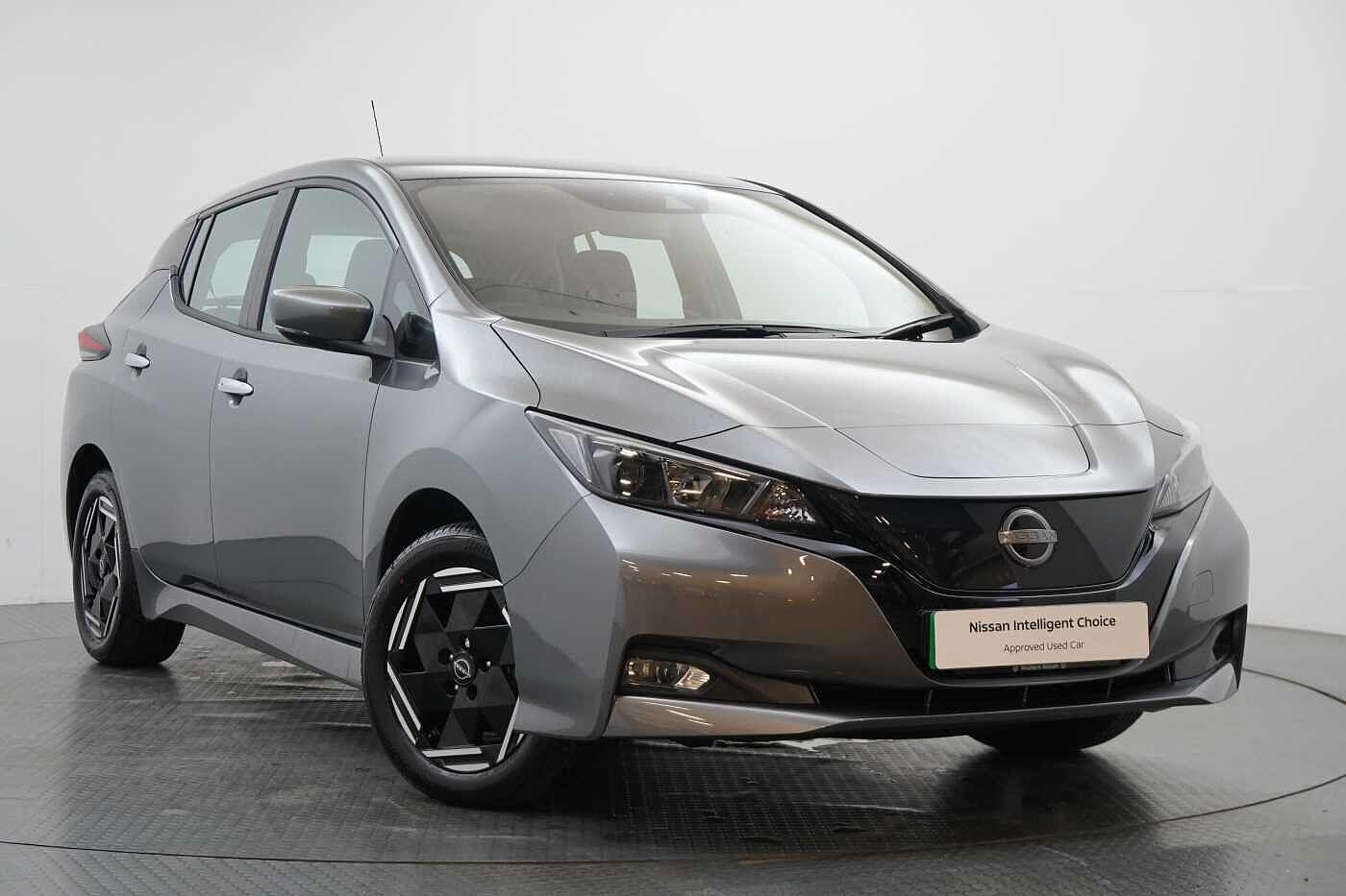 0 Previous Owners, 7" full colour TFT screen combimeter, 8" colour display with touchscreen, Apple car play/Android Auto, Blind spot intervention, Blind spot warning, E Pedal, eCall emergency call system, Electric power assisted steering, Intelligent Cruise control (ICC), Intelligent lane intervention, Lane departure warning system, Rear cross traffic alert, Rear view camera, Speed limiter, Trip computer, 39kWh usable battery capacity, 6.6 kw On-board charger, Charging port remote opening, Mac Pherson strut front suspension and twist beam axle rear suspension, Max DC charging power, ChaDeMo type: up to 50kW, Single motor, 6 speakers, Audio system with USB, Bluetooth with audio streaming, DAB Digital radio, Rear USB ports, Aero roof spoiler, Automatic activation of hazard warning lights, Automatic rain sensing wipers, Body coloured door mirrors with integrated LED turn signals, Chrome door handles, Electric front/rear windows, Follow me home headlights, Front fog lights, Grey rear bumper finisher, Halogen headlamps, High beam assist, Illuminated charge port, Intelligent auto headlights, LED signature daytime running lights with directional indicator, LED signature rear lights, LED third brake light, Manual folding door mirrors, Rain sensor, Rear side wing doors, Rear wiper, 12V socket, 3 seat bench in 2nd row, 60/40 split folding rear seat, Automatic climate control with pollen filter and timer, Front centre console and armrest, Front head restraints, Front seatback pockets, Height adjustable driver seat, Isofix child seat anchor points, Manual adjust driver/passenger seats, Multifunction leather steering wheel, PTC (Positive Temp Co-efficent) heater, Rake and reach adjustable steering column, Rear assist grips, Rear head restraints, Single front passenger seat, Telescopic steering wheel adjustment, Woven fabric upholstery, 3 point front seatbelts with pre-tensioners, 3x3 point rear seatbelts, ABS with EBD and brake assist, Curtain airbags, Driver and passenger airbags, Electrically driven intelligent braking system, Electronic Stability Programme (ESP), Front and rear vented brake discs, Front seatbelt pretensioners + load limiters, Height adjustable front seatbelts, Hill start assist, Intelligent emergency braking with pedestrian recognition, Intelligent ride control, Intelligent trace control, Manual child proof rear door locks, Mechanical parking brake, Nissan safety shield, Seatbelt reminder for driver and front passenger, Side airbags, Traction control, Tyre pressure