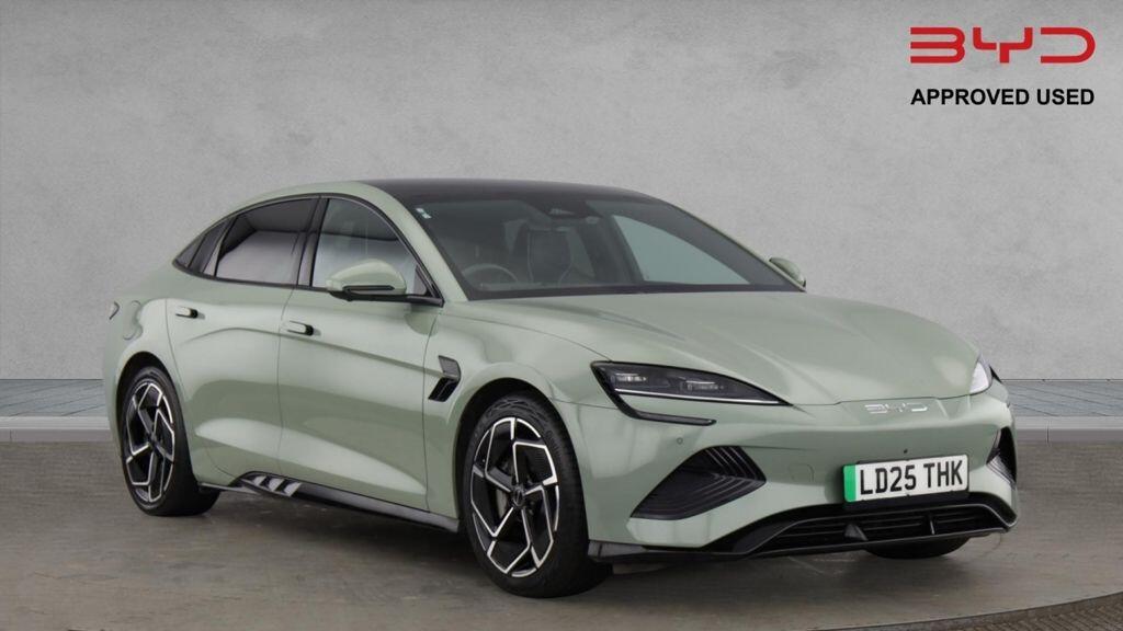 0 Previous Owners, This Approved Used 2025 BYD Seal Excellence finished in beautiful Shadow Green paint. This futuristic electric saloon boasts a powerful Four Wheel Drive system and a substantial 82.5kWh battery, offering an impressive WLTP range of 323 miles. Rapid charging is supported, providing a top-up from 10%-80% in just 26 minutes, while AC charging will take around 8.5 hours. Inside, youll find a luxurious experience with a leather multi-function steering wheel that includes heating, and a front passenger seat with electric adjustment, ventilation, and heating, all contributing to a comfortable journey. Theres a superb amount of legroom for rear seat passengers, The vehicle also features auto air conditioning for perfect climate control, keyless entry and start for ultimate convenience, and front parking sensors to assist with manoeuvring. From the drivers seat youll notice the digital instrument display, and at the centre of the dashboard sits the impressive 15.6in rotating touchscreen. This media system offers tons of fab features, including DAB radio, satellite navigation, Bluetooth interface and Apple CarPlay/Android Auto. and more. You can also set up the scheduled charging, and customise vehicle settings such as the steering and brake assist. The Seal offers a whole host of safety features too, including adaptive cruise control and blind spot monitoring. Pop the car into reverse and youll see the high-definition 360-degree camera. Experience the future of sustain...