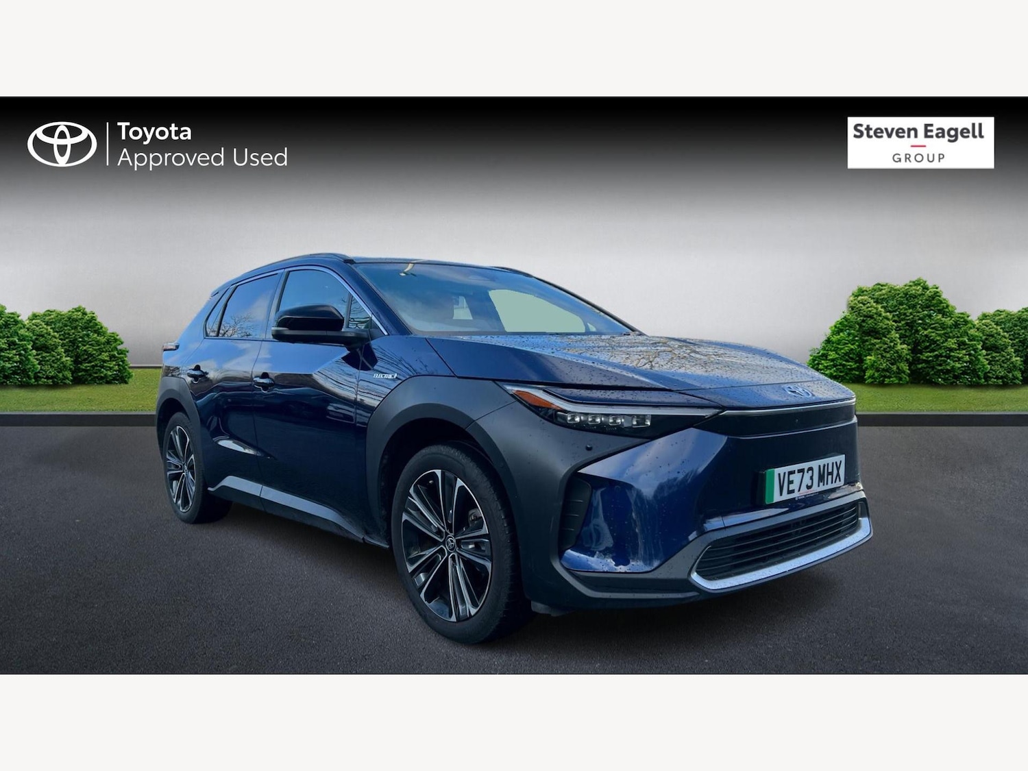 Franchise Approved, This 2024 Toyota bZ4X Vision is a standout example, boasting exceptionally low mileage for its age at just 16,227 miles, and is Toyota manufacturer approved. This electric, four wheel drive model features a 71 kWh battery offering a maximum range of 260 miles. Enjoy the spacious feel provided by the Toyota Skyview Panoramic Roof, a fixed glass roof that floods the cabin with light. Inside, you'll find a heated steering wheel and heated driver and front passenger seats for added comfort, alongside intelligent adaptive cruise control for effortless journeys. A reversing camera is also included, aiding with parking.The bZ4X Vision offers a convenient charging experience, with a full charge at home on a 7kW charger taking approximately 9 hours and 10 minutes, perfect for overnight top ups. For faster charging on the go, it can reach 80% capacity from empty in as little as 34 minutes at a public charging station. These features, combined with its electric drivetrain and all wheel drive capability, position this Toyota bZ4X Vision as a compelling choice for those seeking an advanced and efficient driving experience.