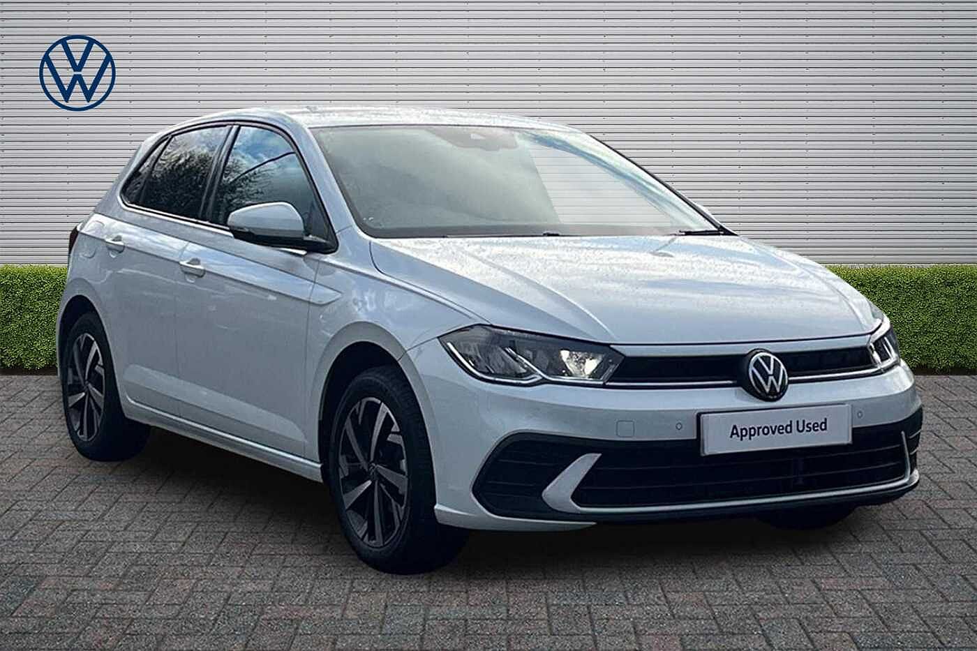 ExDemo, Insurance Group 11, 1 Previous Owner, Franchise Approved, Available from 21/04/2026. Volkswagen Polo Hatchback 1.0 TSI Match 5dr in Pure White. Specification Includes Exterior Features,Solid paint,Exterior Features,Electric front windows,Heat insulating and laminated safety glass windshield,Rain sensor,Rear electric windows,Rear tinted glass from Bpillar backwards approx 65% tinted,Rear windscreen washer and wiper with interval delay,Front wheel drive,Rear shock absorpion,Body colour bumpers with chrome inserts,Body colour door handles,Engine badge deletion,Rear side wing doors,Automatic headlight control with LED separate daytime running lights with coming/leaving home function,Headlight range adjustment,LED Headlights,LED rear combination lamps,Rear fog light,Third brake light,Safety,ABS,ESC (Electronic stability control) + EDL (Electronic Differntial lock) and ASR (Traction control),Front assist with autonomous emergency braking (for Adaptive Cruise Control ACC up to 130 mph),Front disc brakes,Hill hold control,Rear drum brakes,Adaptive cruise control without followtostop and speed limiter,Advanced driver attention and drowsiness monitor,Dynamic road sign display,Multifunction front facing camera for distance control,Power assisted speed sensitive steering,Rear view camera,Automatic dimming interior rear view mirror,Body colour door mirrors,Power folding adjustable/heated exterior mirrors and front passenger exterior mirror lowering function,3 point height adj front seatbelts + pretensioners,3 point seat belt for centre rear seat,3 point seatbelts outer rear with ECE lable,Driver and front passenger airbag with front passenger airbag deactivation,Drivers and front passengers safety optimised head restraints,Extended and predictive pedestrian/ cyclist protection,Front curtain and side airbags with center airbag,Manual child lock in rear doors,Single tone horn,Tyre pressure loss indicator,Interior Features,Carpet mats front and rear,Standard climatic zones,12V power socket in centre console,2 USBC ports in the front 2 USBC charging sockets on the center console in the rear,Ceramique roof lining,Chrome plated radiator grille inserts air vent surrounds and light switch surrounds,Door and side trim panel,Front centre armrest,Handbrake lever handle in leather,Hartley/Thomas cloth upholstery,Headliner in recycled material,Leather trimmed gear knob,Luggage compartment cover,Removable luggage compartment floor,Standard pedal cluster,Three spoke leather wrapped multifunction steering wheel,2 front and 2 rear