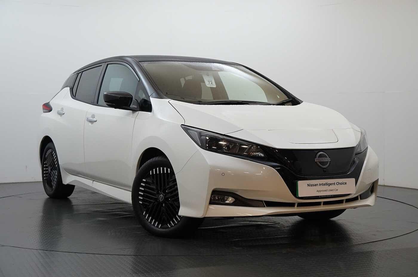 Newbridge0 Previous Owners, 360 degree colour camera view, 7" full colour TFT screen combimeter, 8" colour display with touchscreen, Apple car play/Android Auto, Blind spot intervention, Blind spot warning, E Pedal, eCall emergency call system, Electric power assisted steering, EV telematics system, Front and rear parking sensors, Intelligent around view monitor, Intelligent Cruise control (ICC), Intelligent driver alert system, Intelligent lane intervention, Lane departure warning system, Moving object detection, Navigation system with voice control, Nissan connect services app (air conditioning control, cabin heating and charging), Rear cross traffic alert, Speed limiter, Trip computer, 39kWh usable battery capacity, 6.6 kw Onboard charger, Charging port remote opening, Mac Pherson strut front suspension and twist beam axle rear suspension, Max DC charging power, ChaDeMo type: up to 50kW, Single motor, 6 speakers, Audio system with USB, Bluetooth with audio streaming, DAB Digital radio, Rear USB ports, Aero roof spoiler, Auto dimming rear view mirror, Automatic activation of hazard warning lights, Automatic rain sensing wipers, Chrome door handles, Electric front/rear windows, Electrically adjustable and folding door mirrors, Follow me home headlights, Grey rear bumper finisher, High beam assist, Illuminated charge port, Intelligent auto headlights, LED signature daytime running lights with directional indicator, LED signature rear lights, LED third brake light, Rain sensor, Rear privacy glass, Rear side wing doors, Rear wiper, Shark fin antenna, 12V socket, 3 seat bench in 2nd row, 60/40 split folding rear seat, Automatic climate control with pollen filter and timer, Energy saving cabin heating system with heat pump, Front centre console and armrest, Front head restraints, Front seatback pockets, Height adjustable driver seat, Isofix child seat anchor points, Manual adjust driver/passenger seats, Multifunction leather steering wheel, PTC (Positive Temp Coefficent) heater, Rake and reach adjustable steering column, Rear assist grips, Rear head restraints, Single front passenger seat, Telescopic steering wheel adjustment, Woven fabric upholstery, Heat pack with Heated front seats Leaf, 3 point front seatbelts with pretensioners, 3x3 point rear seatbelts, ABS with EBD and brake assist, Curtain airbags, Driver and passenger airbags, Electrically driven intelligent braking system, Electronic Stability Programme (ESP), Front and rear vented brake discs, Front seatbelt