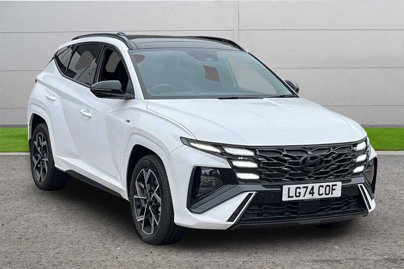 Insurance Group 21, 0 Previous Owners, Franchise Approved, ????Viewings welcome by appointment???? This 2024 Hyundai Tucson 1.6T Hybrid N Line S 4WD Auto combines striking sporty design with hybrid efficiency and premium comfort. Its powerful hybrid system and smooth automatic transmission deliver refined performance with excellent efficiency, while the intelligent fourwheel drive system provides confidence and control in all conditions. As the topoftherange N Line S, it comes exceptionally well equipped with a panoramic sunroof, leather and suede upholstery with red N Line stitching, heated and ventilated front seats, heated rear seats, BOSE premium sound system, headup display, 360degree cameras, adaptive cruise control, wireless phone charging, and smart keyless entry. The bold N Line exterior styling, featuring distinctive bumpers, black detailing, and exclusive alloy wheels, gives this Tucson a commanding and athletic presence. Presented in excellent condition and maintained to the highest standard, this Tucson N Line S Hybrid offers a perfect blend of performance, style, and luxury. A superb opportunity to own one of Hyundais most desirable and technologically advanced SUVs.