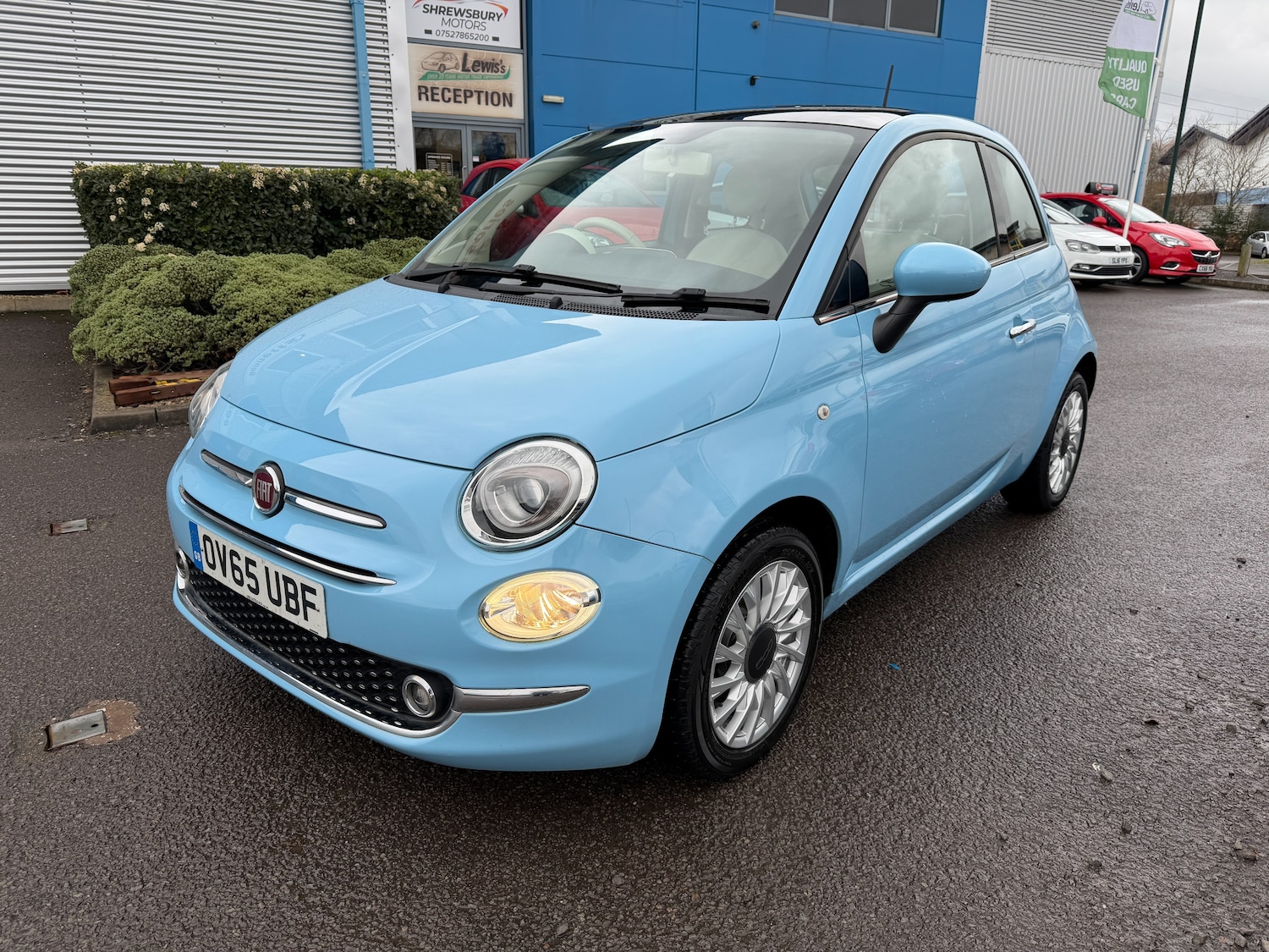 ShrewsburyInsurance Group 8, 1 Previous Owner, £20 Road Tax Full Service History 8 Stamps Cambelt Done This 2015 Fiat 1.2 Lounge Hatchback with just 66505 miles on the clock is the perfect combination of reliability and style. Powered by a petrol engine, this 3 door, 4 seat hatchback is ULEZ compliant and comes with an MOT that expires on 12/12/2026. The Volare Blue exterior is complemented by the stylish cloth interior in BlackLight GreyIvory with Ivory Ambience. The car includes modern features such as a 5in Touchscreen Radio with AUX, USB, DAB, and Bluetooth connectivity, as well as a 12V Socket in the front. With a Space Saver Spare Wheel and excellent fuel efficiency, this Fiat is the ideal choice for any driver looking for a reliable and stylish vehicle., Features Include: , 12v socket front, 5in touchscreen radio with aux usb dab bluetooth, 15in alloy wheels, body coloured bumpers, chrome kit, chrome plated exterior door handles, electric front windows, electrically adjustable painted door mirrors, fix and go puncture repair kit, fixed glass roof with sunblind, heat reflective windows, heated rear window, 5050 split folding rear seat with height adjustable head restraints, air conditioning, front seats with memory function, fuel cap with tap, height adjustable drivers seat, height adjustable front head restraints, instrument panel with rev counter, seatsback pockets, steering wheel height adjustment, steering wheel leather with audio controls, 7 airbags, abs with ebd, automatic door locking, esc electronic stability control, hazard light automatic activation during emergency braking, isofix attachment points for child safety seat on rear seat, rear window wiperwasher, remote central locking, dualdrive power steering, gsi gear shift indicator, rear parking sensors, tpms tyre pressure monitoring system, trip computer, fog lights, led daytime running lights