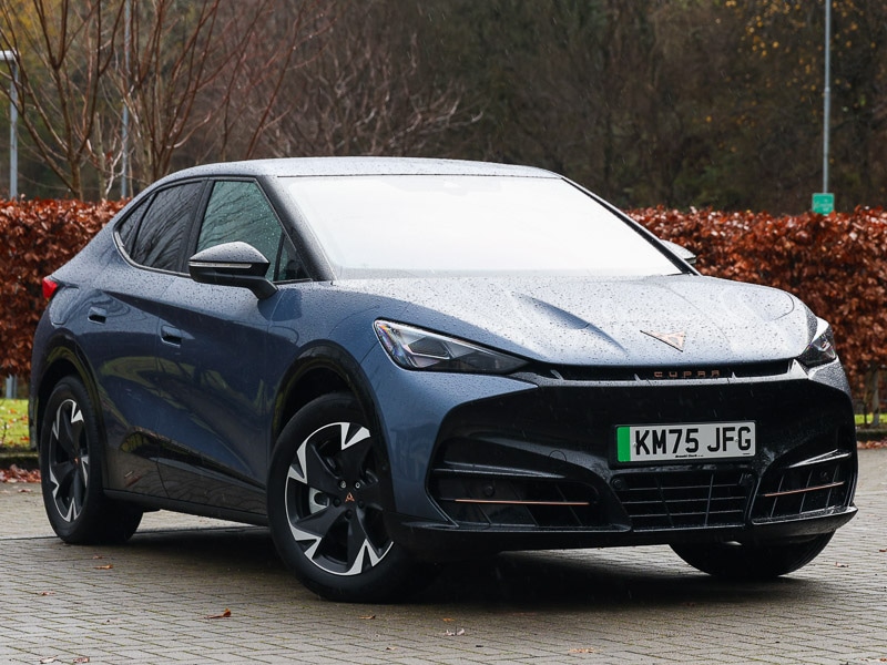 GreenockInsurance Group 34, Winter pack Tavascan V1, Welcome light with logo projector in door mirrors, Ambient lighting "Pure", Front and rear illuminated CUPRA logos, 5.3" Digital Cockpit with 15" central display infotainment system, Navigation system with media and CUPRA Connect with online services, Wireless full link smartphone integration, Intelligent voice control powered by ChatGPT, 19" Vulcano silver machined alloy wheels with 235/55 R19 tyres, Electric tailgate with virtual pedal + switch in driver door, Dynamic steering, Emergency steering support with turn assist, Drive Profile Selection (Range, Comfort, Performance, CUPRA, Individual), Rear view camera, Remote park assist, Forward collision warning, Intelligent park assist, Lane assist, Traffic jam assist, Predictive adaptive cruise control with speed limiter, Rain and light sensors, Front bucket seats, Pre crash system, Keyless entry and go, CUPRA interior sound, Car 2X function