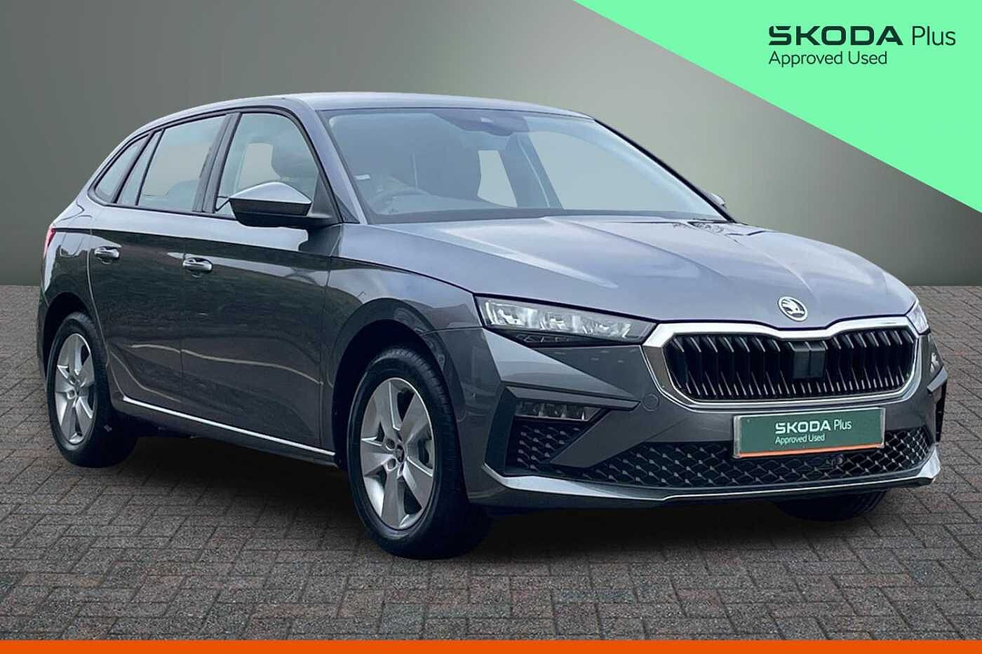 ExDemo, Insurance Group 15, 1 Previous Owner, Franchise Approved, Available from 23/03/2026. Skoda Scala Hatchback 1.0 TSI 116 SE Edition 5dr in Graphite Grey. Specification Includes Paint Metallic,Metallic Graphite grey,Trim Cloth,Loft style Kota uni cloth Satin Black with Krepp recycled decor,Exterior Features,Automatic intermittent wipers,Front and rear electric windows,Heated rear window,Rear wiper,Tinted windows,Black window frames,Body colour bumpers,Body colour door mirrors and handles,Chrome moulding around grille,Rear side wing doors,Unique dark chrome design logo on alloy wheels,Automatic headlight control with manual coming and leaving home feature,Full LED headlights,LED 3rd brake light,LED daytime running lights,LED front turning lights,LED high beam,LED low beam,Rear LED fog light,Safety,ABS,Disc brakes,ESP,Hill hold control,Manual leather parking brake,Advanced driver attention and drowsiness monitor,Front assist system,PAS,Rear parking sensors,Rear view camera,Speed limiter,Traffic sign recognition,Auto dimming rear view mirror,3x3 point rear seatbelts,Child locks,Curtain airbags and front side airbags,Driver and front passenger airbags,One tone horn,Passenger airbag switch off function,Seatbelt reminder for driver and front passenger,Tyre pressure monitoring system,Interior Features,Textile floor mats,Dual zone climate control,Inner circulation control with pollen filter,12V socket in luggage compartment,Black / Grey armrest stitching,Black hotstamping,Cargo elements,Chrome inner door handles,Door inserts in satin black,Front centre armrest,Glasses storage in roof liner,Ice scraper,Illuminated glove compartment,Leather gearknob and handbrake lever,Loft cloth upholstery,Luggage net under rear parcel shelf,Net package and top tether hooks in boot space,Skoda lettering on steering wheel,Ticket holder,Umbrella in driver's door,Front and rear roof lights,Driver and passenger sun visors with vanity mirror,Audio / Communications,Bluetooth,4 USB C ports,8 Speakers,9.2in Skoda navigation display,DAB radio,Driver Convenience,Tailgate,Miscellaneous,eCall (emergency call),Virtual Cockpit 10.25in digital display,Wireless smartlink,Trim,Decord pad door inserts Kota uni,3 seat bench in 2nd row,Front head restraints,Height adjustable driver seat,Height adjustable passenger seat,ISOFIX for front passenger seat,Isofix preparation for back seats,Manual lumbar support for front seats,Pocket on the back of both front seats incl. mobile phone pockets,Single front passenger seat,Third rear headrest,Top tether for