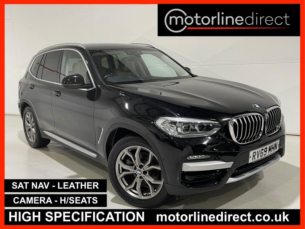 2 Previous Owners, FINANCE & PART EXCHANGE AVAILABLE* Only 67,158 miles from new, SERVICE HISTORY, 2 KEYS this FANTASTIC HIGH SPECIFICATION 4 WHEEL DRIVE BMW X3 XLINE XDRIVE AUTOMATIC is finished in stunning sports black sapphire metallic & is complimented with contrasting full ivory sports leather trim and extends itself to the following additional features on board satellite navigation system, reverse camera, dual zone climate control / automatic air conditioning, trip computer, cruise control with speed limiter, leather trimmed multi function steering wheel with paddle shift, front & rear park distance control, park assist, driver & passenger heated front seats, Bluetooth telephone prep, DAB digital radio, media input, BMW Connected Drive Services, Apple CarPlay, voice command, keyless start, start / stop, ambient lighting, electric tailgate, roof rails, drive mode select, privacy glass, sun protection glazing, intelligent safety, active guard, high beam assistant, electric adjustable & folding exterior mirrors, adaptive LED auto headlights, rain sensor, power assisted steering, abs, airbags, electric mirrors, electric windows, remote central locking, head restraints, BMW 19" sports alloy wheels, BMW anti theft system. ***FINANCE AVAILABLE subject to status. T&C's apply.***PART EXCHANGE AVAILABLE***ALL VEHICLES ARE HPI & NATIONAL MILEAGE REGISTER CHECKED***THE AA WARRANTY IS SUBJECT TO TERMS & CONDITIONS AND DOES NOT COVER VEHICLES THAT ARE BEING USED FOR TAXI, PRIVATE HIRE, CHAUFFEURING PURPOSES OR FOR REWARD.***Please note, that the specifications/components/features etc. are generic to that vehicle of the type advertised but may not be included in the specific vehicle that is for sale. It is for the intended purchaser to satisfy themselves of the presence or absence of any specifications/components/features before sale. Please ask if you are uncertain of anything and we will see if we can assist..12V Power Socket in Front Centre Console, 19in Alloy Wheels Ferric Grey Light YSpoke Style 694 with RunFlat Tyres, 19in Alloy Wheels Light YSpoke Style 694 Ferric Grey, Acoustic Glazing, Active Guard, Adaptive LED Headlights, Adaptive LED Headlights with HighBeam Assistant, Air Conditioning Automatic, Airbags, Alarm System Thatcham 1 with Remote Control and Engine Immobiliser, Ambient Lighting, Apple CarPlay Preparation, Armrest Front with Storage Compartment, Armrest Rear Centre with Two Cupholders, Attentiveness Assistant, Battery Safety Cut Off, Bluetooth Hands Free with USB Audio Interface, BMW ConnectedDrive Online Services, BMW Emergency Call, BMW Individual Exterior Trim Satin Aluminium, BMW Live Cockpit Plus, BMW Navigation System, BMW Professional Radio with Single CD Player with MP3 Playback Compatibility, BMW TeleServices, Bottle Holders Integrated into Door Trim Storage Compartments Front up to 1 litre Rear Up to 750ml, Brake Pad Wear Indicator Front and Rear, Bumper System Front and Rear Replaceable Deformation Elements for Impacts Up to 9mph, Central Locking Switch Doors Fuel Filler Cap Luggage Compartment, Check Control Warning System for Monitoring of Lights and DoorLuggage Compartment Open Warning, Child Locking System Rear Doors, Child Seat ISOFIX Attachment Rear, Condition Based Service, Connected Package Plus, Control Display 6.5in Colour Screen, Crash Sensor, Cruise Control with Brake and Speed Limiting Function, Cup Holders Front Two with Removable Oddments TrayLid, DAB Digital Radio, Direction Indicator Side Repeaters Integrated in Exterior Mirrors, Door Sill Finishers with BMW xLine Designation, Drive Performance Control with ECO PRO Comfort and Sport Modes, DSC Dynamic Stability Control Plus, Dynamic Brake Lights, Electric Windows Front and Rear with OpenClose Fingertip Control AntiTrap Facility and Comfort Closing Function, Electro Mechanical Parking Brake, EPS Electric Power Steering, Exhaust Tailpipe Chrome Dual Round Split Left and Right, Exterior B Pillar Black, Exterior Mirrors Electrically Folding with Anti Dazzle, Exterior Mirrors Electrically Adjustable, Exterior Parts in Body Colour, First Aid Kit and Warning Triangle, Gear Knob Leather, Grab Handles Integrated in Roof Lining x4, Heat Protection Glazing with Green Tint, Heated Windscreen Washer Jets, High Level Third Brake Light Using LED Technology, iDrive Controller 8 Favourite Butto