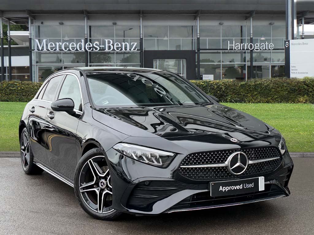 Harrogate0 Previous Owners, 10.25 inch touchscreen central media display, 10.25" Digital instrument cluster display screen, Attention assist, Blind spot assist, Brake pad wear indicator warning light, Car wash mode, Cruise control + speed limiter, Direct steering, Direction indicators with lane change function, Dual bluetooth interfaces, DYNAMIC SELECT with a choice of driving modes (ECO, Comfort, Sport and Individual), ECO start/stop function, Engine start/stop button, Fingerprint scanner, Fluid level warning indicator for fuel, oil, coolant and washer fluid, Fluorescent jacket for driver, Harddisk navigation, Hey Mercedes Voice activation, Lamp failure indicator, Lane keeping system, Mercedes me connect including emergency call system, accident recovery, breakdown and maintenance management, Mercedes me remote services, Outside temperature gauge, Owners manual in English, Preinstallation of private car share, Remote boot closing, Service indicator (ASSYST), Smartphone integration with Apple CarPlay and Android auto, Speed limit assist, Speed sensitive power steering, Tailgate, Trip computer in multifunction display with current consumption indicator, Wireless charging, Lowered comfort suspension, DAB Digital radio, MBUX multimedia system, Mercedes Benz sound system (100 W) with 6 speakers, 4 Electric Front and Rear windows, Adaptive brake lights, AMG body styling AMG front apron with front splitter and AMG rear apron and visible exhaust tailpipe trim elements, Body colour bumpers, Body colour door handles with chrome inserts, Body colour side skirt, Chrome beltline strips, Diamond radiator grille with pins in fine star pattern, Electric adjustable and heated door mirrors with integrated LED side indicators, Exhaust system with 2 visible tailpipe trim elements and rear apron, Headlamp assist automatic headlamp activation, Heated glass rear windscreen + timer control, LED High level third brake light, LED High Performance headlamps including integral LED daytime running lamps and adaptive highbeam assist, LED tail lamp, Privacy glass, Radio aerial, Rain sensing windscreen wipers with two sensitivity settings, Rear fog lights, Rear side wing doors, Rear windscreen wiper, Window line trim strip in chrome, 3 seat bench in 2nd row, 3 Spoke flat bottom leather multi function steering wheel with perforated leather in grip area, 4 way lumbar support, 40:20:40 split folding rear seats, Air conditioning One zone THERMATIC automatic climate control with automatically controlled air