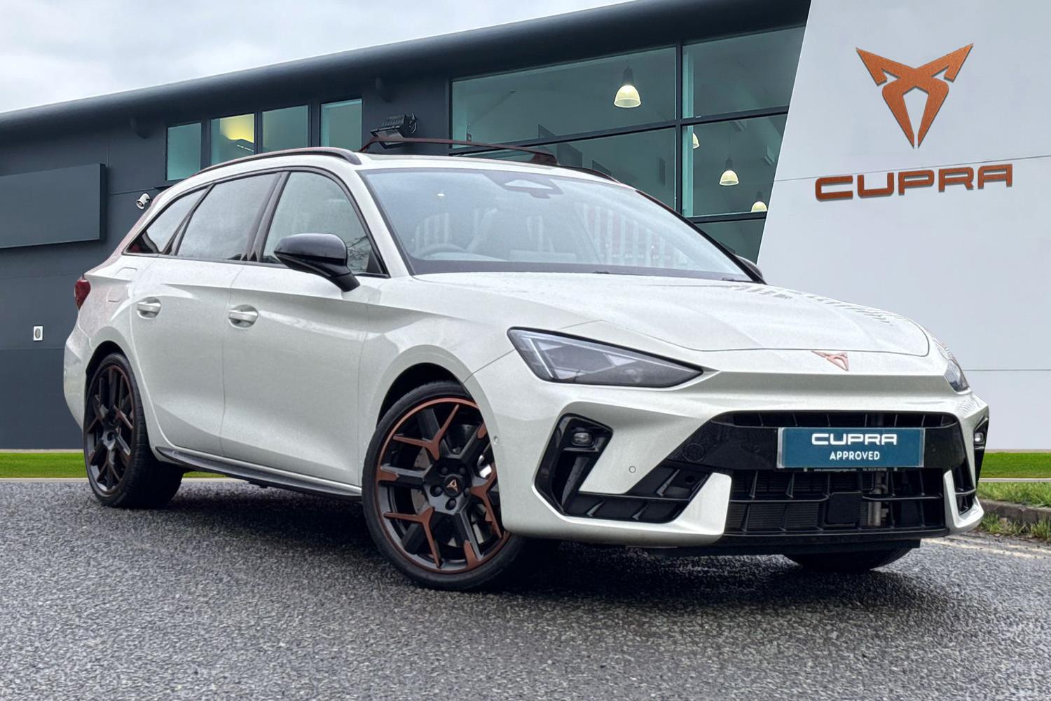 Crewe0 Previous Owners, Finished in striking Taiga Grey and sitting on eye catching 19 inch Hailstorm forged machined alloy wheels in black and copper, this CUPRA Leon 1.5 eHybrid VZ3 DSG delivers an impressive blend of performance, efficiency and premium design. Powered by an advanced plugin hybrid system with a 25.8kWh battery and compliant with Euro 6 standards, it offers smooth, responsive driving supported by the CUPRA Drive Profile and a refined DSG automatic gearbox. The bold exterior is enhanced by CUPRA sports bumpers, glossy black roof rails, dark tinted rear windows and distinctive chrome and copper detailing, while Matrix LED headlights, LED front fog lamps with cornering function and a CUPRA logo welcome light projector add both style and practicality. Inside, the cabin feels thoroughly modern and driver focused, featuring a digital cockpit, Media System Plus with navigation and Full Link smartphone integration, alongside wireless phone charging for everyday convenience. Comfort is elevated with heated front seats, a heated CUPRA Supersports steering wheel with satellite buttons, interior wraparound lighting and sporty CUPRA pedals. Safety and assistance systems are extensive, including adaptive cruise control with follow to stop and speed limiter, lane change assist with emergency assist, side assist with exit warning, front assist with collision detection for vehicles, pedestrians and cyclists, high beam assist, front and rear parking sensors and a rear view camera. Practical touche...