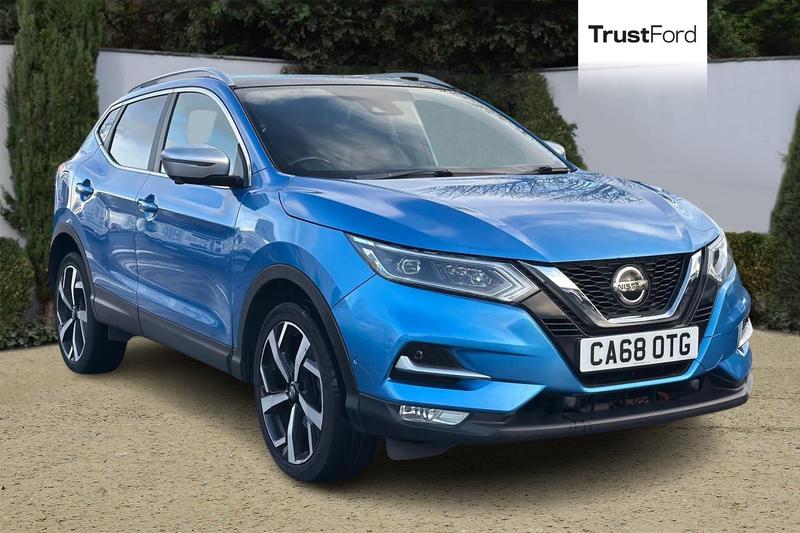 Insurance Group 16, Advanced drive assist display 5'' TFT coloured screen, Android Auto, Apple CarPlay preparation, Bluetooth connectivity, Electric speed sensitive power steering, Front parking sensors, Intelligent around view monitor, Intelligent parking assist, Lane departure warning system, Nissan connect evo 7 touchscreen navigation and entertainment system, Normal or sport selectable steering, Outside temperature sensor, Push button starter, Rear parking sensors, Rear view camera, Service interval indicator, Smartphone integration, Stop/start system, Tomtom connected services, Traffic sign recognition, Trip computer, Voice control system, Anti dazzle rear view mirror, Auto wipers, Body coloured door handles, Chrome window surround, Daytime running lights dip function when turn signal applied, Electric folding door mirrors, Electric front and rear windows with one touch illuminated window controls, Electric front/rear windows, Electrically adjustable door mirrors, Front fog lights, Front/rear full painted bumper/side silver finisher, Gloss silver door mirror caps, Halogen headlights, Heated door mirrors, High beam assist, Intelligent auto headlights, LED indicators in door mirrors, Matt silver roof rails, One touch 4x auto windows with illuminated switches, Panoramic sunroof with one touch shade, Privacy glass, Rear roof spoiler, Rear wiper with reverse link, Shark fin antenna, Underbody vortex generators, 2 X front 12v power sockets, 3 height adjustable rear headrests, 60/40 split folding