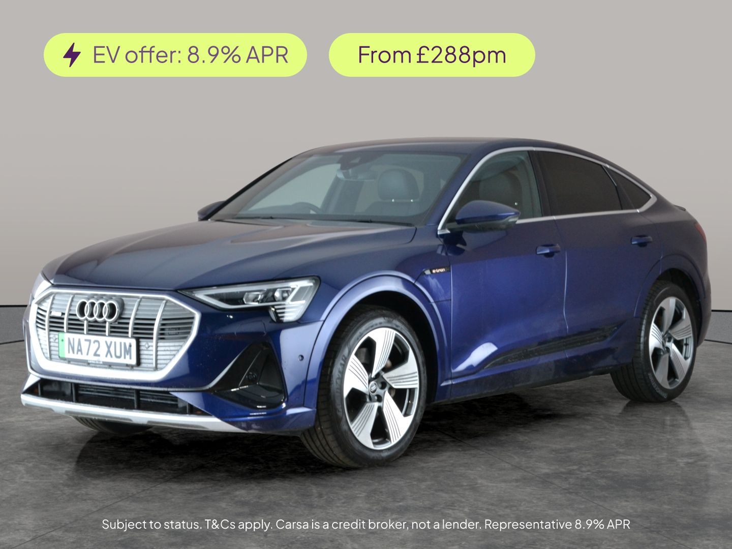 0 Previous Owners, Experience the thrill of electric driving with the striking blue Audi etron Sportback. Enjoy refined comfort with heated electric seats, driver memory function, and air suspension for a smooth ride. Stay entertained with the upgraded sound system and MMI Navigation Plus, while advanced features like LED headlights, reversing camera, and lane departure warning keep every journey safe and effortless. Discover electric luxury with Audis cuttingedge technology and quattro allwheel drive. 3 services recorded, last serviced on 06/06/2025 at 30,800 miles. MOT to 29/11/2026. Visit our website for service history, online valuation, full vehicle specification plus multiple images. Certain features listed may be available via subscription packages at extra costs, please consult with Audi for details. This vehicle is VAT qualifying. Any feature/option specified here is from 3rd party data. We cannot guarantee the accuracy of any specification supplied by a 3rd party. We recommend that you physically check the specification of the vehicle on site prior to purchase. This information does not form part of the buying contract. Terms & Conditions apply. We have over 2,000 cars available from our 10 national branches, check our website to see all our stock. Our Trustpilot rating is 4.4/5 with over 9,000 reviews.