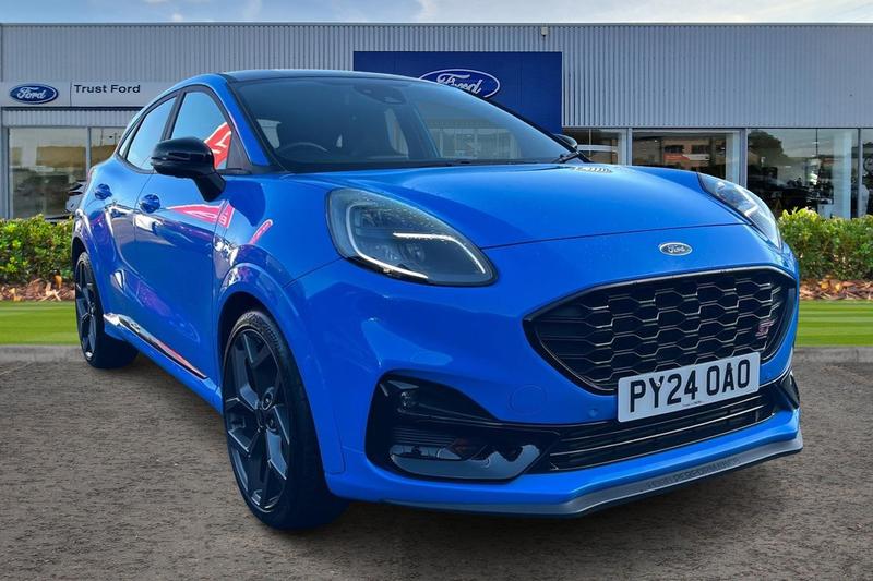 CarlisleCruise control with Intelligent speed assist, Driver impairment monitor, Emergency call service, Ford easy fuel, Front and rear parking sensors, Full digital 12.3 instrument cluster, Lane keeping aid with lane departure warning, Power assist steering, Selectable drive modes (normal, sport, eco, track), Speed sign recognition, Automatic headlights with auto high beam, Automatic rain sensing wipers, Dual chrome exhaust, Fixed LED signature headlamps, Front fog lamps, LED daytime running lights, LED rear lamps, Power foldable heated door mirrors with puddle lamps and puma logo protection, Privacy glass to side rear windows and tailgate glass, Quickclear heated windscreen, Rear side wing doors, Rear wiper, ST scuff plates, Third brake light, Unique ST body styling kit including wing mirrors and Ford Performance embossed splitter, 3 seat bench in 2nd row, Alloy sports pedals, Centre console with armrest and stowage, Ford megabox extended bootspace, Ford Performance sensico partial premium leather upholstery with metal grey stitching, Front and rear floor mats, Front and rear head restraints, Manual 6 way driver seat adjust with lumbar adjustment, Manual 6 way passenger seat with lumbar seat adjustment, Single front passenger seat, ST flat bottomed steering wheel with metal grey stitching, ST logo projection, Unique ST gear shift knob, Wireless charging pad with electronic air temperature control (EATC), 3 rear seatbelts, Child safety lock, Electronic stability control (ESC) and