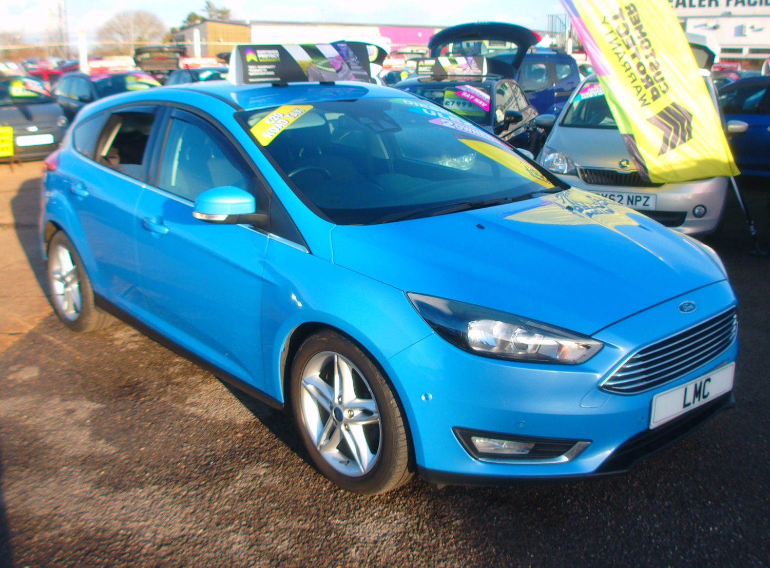 EastbourneInsurance Group 14, 1 Previous Owner, £20 A YEAR ROAD TAX AND ULEZ COMPATABLE 2016 FORD FOCUS 1.5 TDCI DIESEL 120 TITANIUM 5 DOOR, BLUE, 2 OWNERS, 75,351 MILES, 6 STAMP HISTORY + INVOICES, BLUE, AIR CON, BLUETOOTH, SAT NAV, CRUISE CONTROL, FRONT AND REAR PARK SENSORS, CD PLAYER, USB,E/WINDOWS, E/MIRRORS, C/LOCKS, AUTOMATIC DOOR OPEN PROTECTORS, CLOTH, R/W/WIPE, TINTS, FRONT FOGS, 17'' ALLOY WHEELS, NEW MOT WHEN SOLD, SUSSEX, EAST SUSSEX, EASTBOURNE, BN236PJ, 01323 643326 Features Include: , air conditioning, bluetooth connection, cruise control, front parking sensor, multifunction steering wheel, power steering, rear parking sensor, abs, isofix child seat anchor points, multiple airbags, central locking, electric mirrors, electric windows, cd player, alloy wheels, colour coded body, front fog lights, rear wash/wipe, aux, ulez compliant, usb, zero admin charge