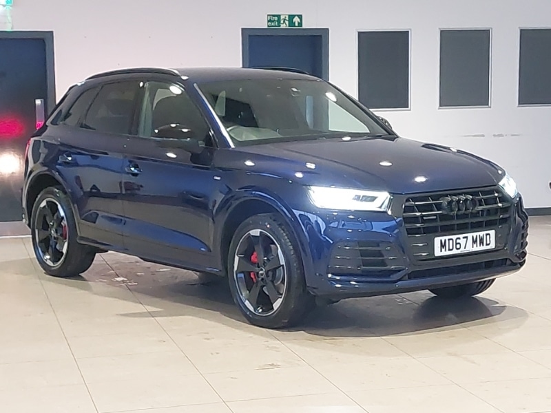 IrvineInsurance Group 32, Audi smartphone interface, Mobile telephone preparation bluetooth interface, Voice control system, 7" Colour driver information system, Audi drive select, Audi parking system plus with front and rear sensors, Dynamic suspension, MMI radio plus with 7" colour MMI screen and MMI controller, DAB Digital radio, 2x SD card slot, 2 x USB charging port with aux input socket, LED headlights with LED rear lights + dynamic rear indicators, Light and rain sensor for auto activation of lights and windscreen wipers, Privacy glass with front acoustic glazing, Acoustic windscreen, Heated front seats, Titanium black styling pack Q5, LED interior light pack Q5, Hill hold assist, Tyre pressure warning, Keyless Go access/ignition system, 20" 5 arm rotor design sport alloy wheels in gloss anthracite black, diamond cut finish