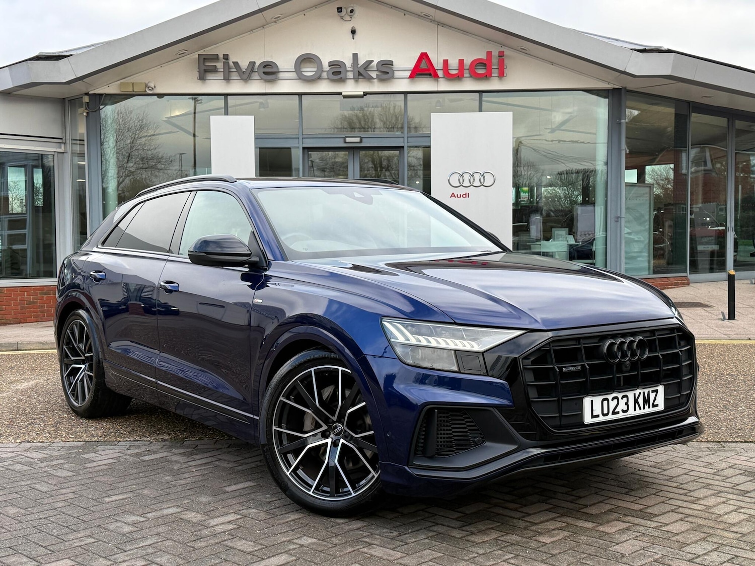 Insurance Group 48, 0 Previous Owners, Franchise Approved, 1 OWNER, FULL AUDI SERVICE HISTORY, SATELLITE NAVIGATION, MMI TOUCHSCREEN, AUDI VIRTUAL COCKPIT, BLUETOOTH CONNECTIVITY, DAB RADIO, AUDI SMARTPHONE INTERFACE WITH APPLE CARPLAY AND ANDROID AUTO, VOICE CONTROL, BANG & OLUFSEN PREMIUM SOUND SYSTEM, COMFORT AND SOUND PACK, WIRELESS PHONE CHARGING, 4 ZONE CLIMATE CONTROL, BLACK VALCONA LEATHER UPHOLSTERY, POWER FRONT SEATS WITH MEMORY FUNCTION, HEATED FRONT SEATS, 40/20/40 SPLIT FOLDING REAR SEATS WITH ELECTRIC STOWAGE COVER, FLAT BOTTOM STEERING WHEEL, EXTENDED LED INTERIOR LIGHTING, ADAPTIVE AIR SUSPENSION, AUDI DRIVE SELECT, POWER TAILGATE, ADVANCED KEY, MATRIX LED HEADLIGHTS, BLACK STYLING PACK WITH BLACK ROOF RAILS, 22INCH ALLOY WHEELS, PRIVACY GLASS, ELECTRICALLY FOLDING/HEATED/AUTODIMMING WING MIRRORS, FRONT AND REAR PARKING SENSORS, PARKING ASSISTANT PLUS, 360 DEGREE CAMERA, CRUISE CONTROL WITH SPEED LIMITER, LANE DEPARTURE WARNING, AUDI PRE SENSE, EMERGENCY SOS, QUATTRO, EURO 6, ULEZ.All Audi Approved used cars are offered with a 12month warranty and roadside assistance.Five Oaks Audi are delighted to offer this 2023 Audi Q8 Black Edition 55 TFSI quattro 340 PS tiptronic in Navarra Blue over ,Black Valcona Leather and has completed just miles. We are proud to be part of the Harwoods group, a family run business established in 1931. With four Approved Audi retailers within our group, we have access to over 400 vehicles. If this isn't the right car for you, please contact us and we will find it.If this isn't the right car for you our Group stock has specification to include Sunroof, Heated Steering Wheel, Reverse Camera, Rear Entertainment, Deployable Towbar, Tech Pack, Panoramic Sun Roof, Tow Bar, Black Pack, Adaptive Cruise, Massage Seats, Refrigerator, AWD, Technology Pack, Head up Display, Vorsprung, Technik, Black Edition, SLine, S Line, Edition 1, TFSI, Quattro, Sportback, LWB. Other colour options including Black, Blue, Green, Silver, White, Red, Grey, Yellow, Orange. Interior options of Ebony, Black, Ivory, White, Tan, Cream, Oyster, & Euro 6 ULEZ compliant drive trains.
