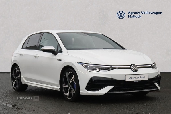 1 Previous Owner, 2023 Volkswagen Golf 8 R 2.0 TSI 4MOTION 320PS 7speed DSG in Pure White Winter Pack with heated front seats and steering wheel Rear view camera 18" Alloy wheels IQ Light LED Matrix headlights with adaptive beam pattern Winter pack Heated front seats and heated leather steering wheel Discover Navigation system with 10" touchscreen Wireless Apple CarPlay and Android Auto Travel Assist with Emergency Assist inc