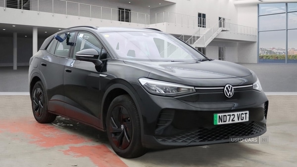 0 Previous Owners, The Volkswagen ID.4 109kW Life Pure 52kWh Auto offers a modern electric driving experience with a mileage of 23,083, making it a suitable choice for those seeking a wellmaintained vehicle with a refined feel. The automatic transmission ensures ease of use in various driving conditions, while features such as heated front seats and acoustic glazing for the rear and side windows enhance comfort and cabin quietness. A heated windscreen and rear window, along with front and rear electric windows, contribute to usability throughout the seasons, and the 30colour ambient lighting provides a pleasant atmosphere for every journey.This model is finished in black, complemented by body colour door handles, bumpers, and door mirrors with integrated indicators, giving it a cohesive and contemporary appearance. The exterior design is further highlighted by LED headlights with automatic driving light switching, LED rear combination lamps, and a rear wiper for improved visibility. Art Velours microfleece cloth upholstery and leatherette accents on the sides, rear, and armrest blend durability with comfort, while illuminated smartphone storage and front carpet mats add to the vehicle's practical appeal.Specification highlights include a 5.3inch digital dashboard display, Discover Navigation Pro infotainment system with a 10inch touch screen, and adaptive cruise control with stop and go capability. The ID.4 also offers advanced safety features such as blind spot information, proactive passenger protection, curtain airbags for front and rear passengers, and an electronic parking brake with auto hold. Additional amenities like wireless phone charging, USBC ports in both front and rear, and winter driving mode ensure convenience and adaptability, while remote central locking with two remote keys and an antitheft alarm system provide peace of mind.Speak to the dealer for more information on this vehicle