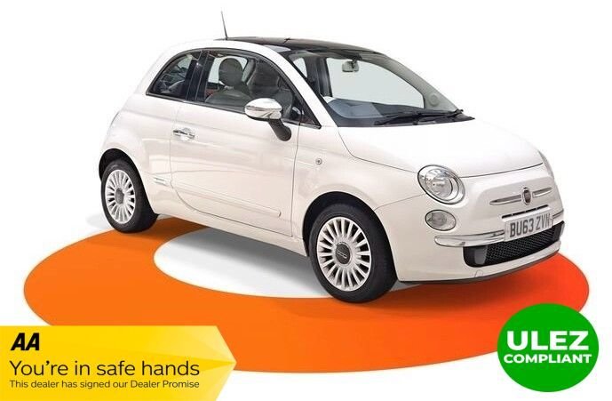 HuntingdonInsurance Group 9, 2 Previous Owners, This 2013 Fiat 500 Lounge boasts a full service history, offering peace of mind for its next owner. This stylish 1.2 litre petrol model comes with an MOT valid until July 2026, ensuring it is roadworthy and ready for your journeys. The Lounge trim level includes essential features such as air conditioning, making every drive comfortable. The Fiat 500 Lounge is a popular choice, and this particular example stands out with its comprehensive service record and long MOT. The inclusion of air conditioning further enhances its appeal, providing a pleasant cabin environment regardless of the weather. This combination of well maintained provenance and desirable features makes this Fiat 500 a compelling option..Funk White, 15in 18Spoke Alloy Wheels, 15in Alloy Wheels, Air Conditioning, Black ambience, Body colour door mirrors, Fixed Glass Sunroof with sunblind, Ivory ambience