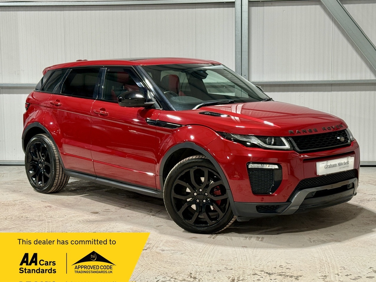 Christchurch1 Previous Owner, Firenze Red Metallic Paint with Two Tone Red & Black Full Leather Interior, 20in Alloy Wheels, Panoramic Roof, Front & Rear Radar Type Parking Sensors, Reversing Camera, Power Opening Tailgate, Heated & Electrically Adjustable Powerfold Door Mirrors, Automatic Headlights, Front & Rear Fog Lights, Electrically Heated Windscreen, Automatic Windscreen Wipers, Heated Rear Screen with Intermittent Wiper, Front & Rear Electric Windows, Rear Privacy Glass, Digital Dual Zone Automatic Climate Control with Air Conditioning, Front Heated & Electrically Adjustable Sports Style Seats with Memory, Rear Heated Seats, Multifunction Touchscreen Display with Satellite Navigation, Meridian Audio System with FM & DAB Radio, CD Player, USB & Aux Input, Bluetooth Telephone & Media Streaming, Multifunction Paddleshift Steering Wheel with Tilt & Telescopic Adjustment, Cruise Control, Speed Limiter, Lane Departure Warning, Terrain Selection, Hill Descent Mode, Centre Armrest with Storage Below, Rear Folding Armrests, Front Cup Holders, 12V Power Outlet, ISOFIX Preparation, 2 x Keys. This LAND ROVER RANGE ROVER EVOQUE 2.0 TD4 HSE Dynamic 5dr Auto is an absolutely stunning and head turning example. Elevate your drive with this 2017 Land Rover Range Rover Evoque 2.0 TD4 HSE Dynamic, featuring a potent 180 hp turbodiesel engine paired with a smooth 9speed automatic transmission for impressive performance and up to around 40 mpg in realworld efficiency. As a topspec HSE Dynamic model, it boasts premium luxury with perforated leather seats, a panoramic roof, Meridian sound system, advanced InControl infotainment, and dynamic styling accents, delivering standout presence, refined comfort, and legendary Land Rover capability in a compact SUV package. This Range Rover Evoque comes with a full service history. Upon sale, the vehicle will have a brand new MOT with any advisory rectified along with a fresh service. Viewing and test drive is a must! The Team at Graham Mitchell Automotive are delighted to offer this vehicle to the market with a 3 Month Nationwide Warranty, with options to extend from 12 Months to 3 Years, along with 12 Months Free AA Breakdown Cover. Please note, we operate on a viewing by appointment only basis, as not every vehicle is kept immediately on site. Every vehicle that is offered for sale has a prior multipoint inspection before coming into stock, along with a full HPI Check. Our stock never stays available for long, so secure this vehicle today with a deposit. We accept payment by bank transfer and debit & credit card. To view our entire range of available stock, visit our Website. We are very proud to be a consistent 5* trusted dealer, with our reviews available on Google. We are also proud to be an AA Accredited and Trading Standards approved Dealer. At Graham Mitchell Automotive, we strive for first class customer service and aim to present the best quality stock. Purchase today with peace of mind.
