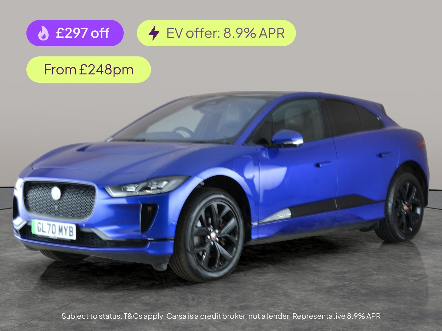Towcester1 Previous Owner, Experience the luxury and innovation of the Jaguar IPACE in stylish blue. Enjoy premium features like Adaptive Cruise Control, a headup display, upgraded Meridian audio system, and seamless Apple CarPlay. Travel in comfort with heated seats and a heated steering wheel, plus stay secure with Blind Spot Assist, Lane Departure Warning, and Traffic Sign Recognition. Keyless entry and bright LED headlights add convenience and flair to every drive. Discover pure electric performance with sophistication. 3 services recorded, last serviced on 15/02/2025 at 60,684 miles. MOT to 27/01/2027. Visit our website for service history, online valuation, full vehicle specification plus multiple images. Any feature/option specified here is from 3rd party data. We cannot guarantee the accuracy of any specification supplied by a 3rd party. We recommend that you physically check the specification of the vehicle on site prior to purchase. This information does not form part of the buying contract. Terms & Conditions apply. We have over 2,000 cars available from our 10 national branches, check our website to see all our stock. Our Trustpilot rating is 4.4/5 with over 9,000 reviews.