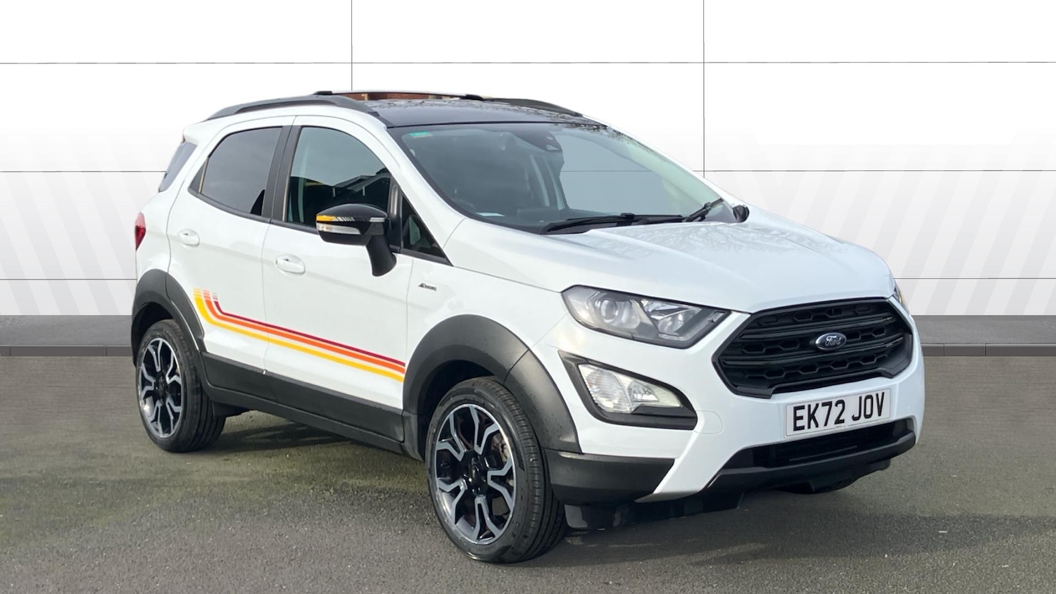 Insurance Group 13, 1 Previous Owner, 0, 2020 Ford EcoSport 1.0 EcoBoost 125 Active 5dr Petrol Hatchback Registered in September 2020, this smart and versatile EcoSport has covered 15,150 miles and had two previous owners. With its raised driving position and efficient 1.0 EcoBoost engine, it's well suited to both urban driving and longer journeys.The Active trim adds rugged styling and useful features including touchscreen infotainment with Apple CarPlay and Android Auto, rear parking sensors, cruise control, air conditioning, alloy wheels, and roof rails. Compact on the outside yet practical inside, it's easy to drive and economical to run.Well presented and ready to go. Test drives available now at Nissan Sheffield come and see the EcoSport for yourself..Metallic Paint, Alloy Wheels, DAB Radio, Bluetooth& USB, Luggage compartment carpet, Premium front floor mats, Rear wiper, Privacy glass, Automatic front wipers, Power front and rear windows, Quickclear heated windscreen, ABS, Traction control, Electronic Stability Programme with hill launch assist, Pre collision assist system with AEB, Sports suspension, PAS, Traffic sign recognition, Cruise control, Rear view camera, Rear parking sensors, Intelligent speed limiter, Easy fuel capless refuelling system, Trip computer, Seatbelt reminder for driver and front passenger, Ford SYNC 3 nav system with DAB radio, 8" screen, emergency assistance, Apple car play/Android auto, 2x USB, 6 speakers, Ford pass connect, eCall (emergency call), Auto dimming rear view mirror, Electrically adjustable and heated door mirrors, Steering wheel mounted audio controls, Black roof rails, Body colour door handles, Body coloured bumpers, Quote Ref: 519646