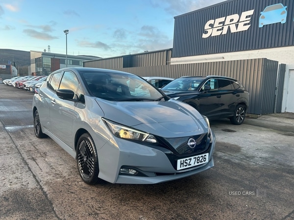 BelfastThe Nissan LEAF 110kW NConnecta 39kWh Auto is well suited to a broad range of drivers seeking a dependable electric vehicle with low mileage, showing just 12,500 miles recorded. The automatic transmission ensures a relaxed driving experience, and the vehicle is equipped for everyday use with thoughtful features such as electric windows, automatic rainsensing wipers, and a practical 60/40 split folding rear seat. Comfort is further enhanced by the automatic climate control system with a pollen filter and energysaving heat pump, while heightadjustable front seats and a multifunction leather steering wheel provide a tailored driving environment.Performance is supported by a 150 bhp electric motor, enabling responsive acceleration and a 060 mph time of 7.9 seconds. The ePedal system offers an efficient and intuitive driving feel, and intelligent cruise control with speed limiter provides further ease on longer journeys. Advanced driver aids, including blind spot warning and lane departure warning, add to a secure and composed drive.This LEAF is finished in grey with a grey rear bumper finisher, complemented by chrome door handles and a shark fin antenna for a clean, modern appearance. LED signature daytime running lights, follow me home headlights, and halogen headlamps deliver assured visibility, while rear privacy glass and an aero roof spoiler enhance the vehicle's overall look. Details such as illuminated charge port, rear wiper, and stylish woven fabric upholstery combine practicality with contemporary styling.Specification highlights include an 8'' colour touchscreen display with navigation, Apple CarPlay and Android Auto, and a 360degree colour camera view system to support parking and manoeuvring. Safety is prioritised with features such as Nissan Safety Shield, intelligent emergency braking with pedestrian recognition, curtain and side airbags, and a Thatcham Cat.1 alarm. Additional conveniences include intelligent key with push button starter, electric power assisted steering, front and rear parking sensors, and comprehensive app connectivity for air conditioning, cabin heating, and charging control