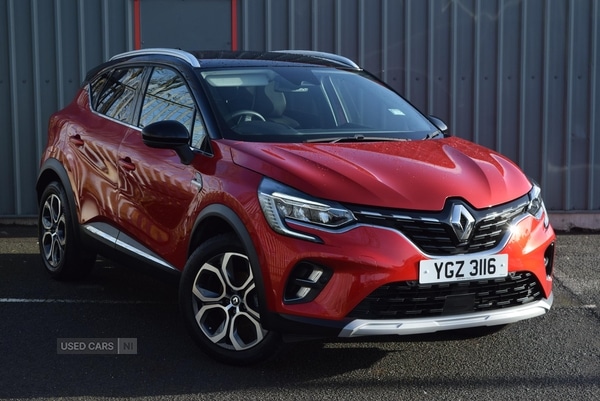LisburnInsurance Group 8, 0 Previous Owners, The Renault CAPTUR 1.0 TCE 90 Techno is a versatile hatchback, suitable for a wide range of drivers seeking practicality and comfort. With a mileage of only 15,580, it offers the reassurance of relatively low use, while the MOT is valid until late 2026. The manual transmission provides a responsive and engaging driving experience, and the adjustable seating and steering wheel ensure a comfortable position for both driver and passengers. Ample boot space, with a capacity ranging from 351 to 1,275 litres, adds useful flexibility for luggage and everyday needs.This model is designed with a distinctive appearance, featuring red paintwork, body coloured bumpers, door mirrors, and handles. Chrome accents around the air deflectors, front wing, and window lining, as well as black side door protection with a chrome effect, contribute to a refined exterior. The Cshaped LED lighting signatures, 3Deffect rear lights, and shark fin antenna provide modern styling elements, while longitudinal roof bars and grey skid plates offer a robust touch.The interior combines synthetic leather and cloth upholstery for a comfortable and contemporary feel. Automatic climate control with demist function, rear air vents, and a central LED rooflight enhance the cabin environment. Thoughtful details, such as a sliding rear bench, multiple storage compartments, a wireless phone charger, and a 7'' TFT driver information display, add further convenience.Specification highlights include front and rear parking distance sensors, a rear view camera, and EasyLink 7'' touchscreen with navigation, smartphone integration, and ambient lighting options. Advanced safety features are comprehensive, with multiple airbags, ISOFIX points, antilock braking, electronic stability control, active emergency braking, lane keep assist, and traffic sign recognition. Security is supported by hands free keycard entry, automatic door locking, and an antiintruder device, ensuring peace of mind for the driver and passengers