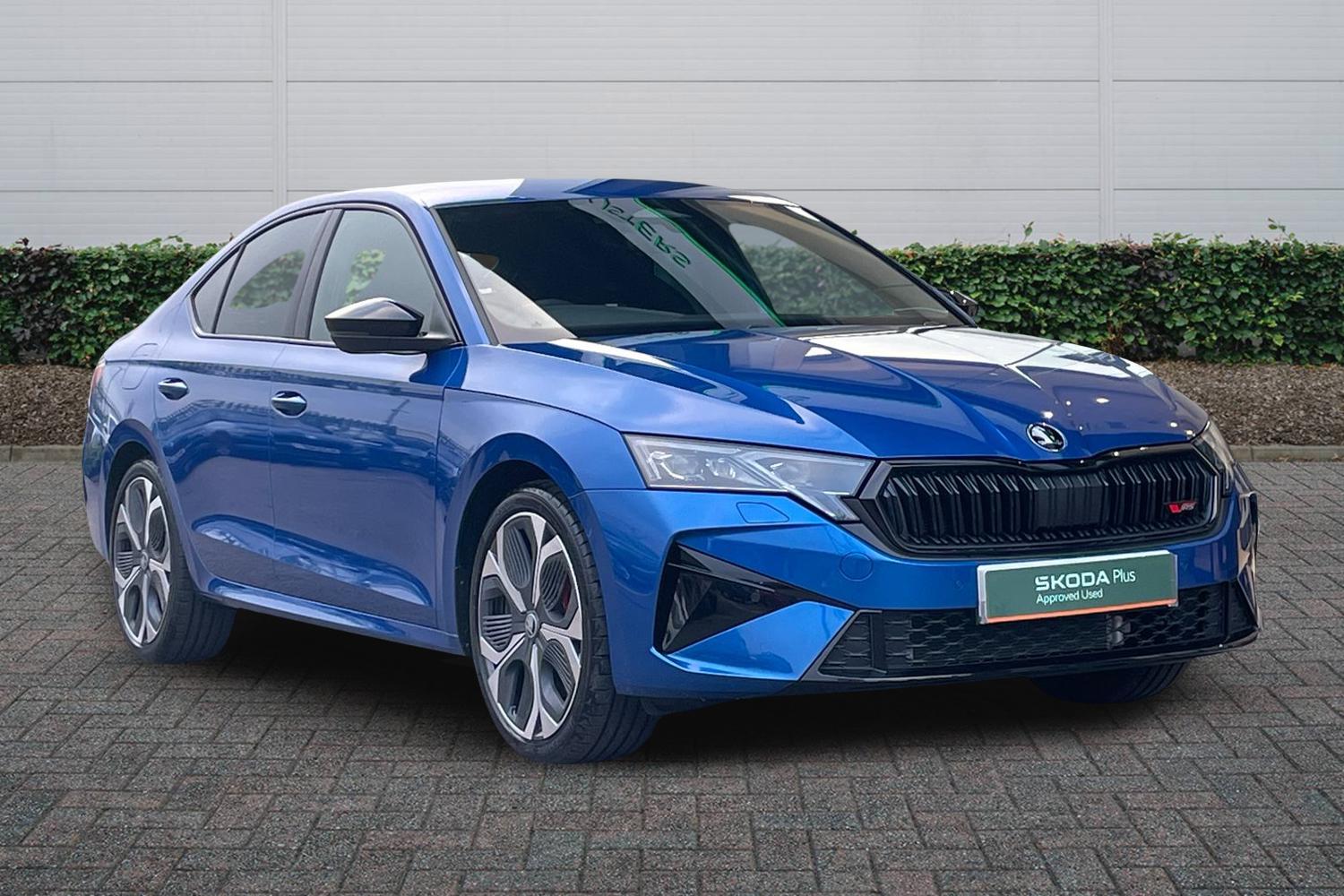 ExDemo, Insurance Group 27, 0 Previous Owners, Franchise Approved, Available from 28/04/2026. Skoda Octavia Hatchback 2.0 TSI vRS 5dr DSG in Race Blue. Specification Includes Paint Metallic,Metallic Race blue,Trim Cloth,vRS Design Selection Black fabric with red stitching,Exterior Features,Aero front windscreen wipers with intermittent function,Electric front and rear windows,Heated rear windscreen,Rain and light sensors,Rear privacy glass,vRS suspension,Black sport exhaust pipes,Body colour bumpers,Body colour door handles,Bumpers with rear red reflector strip,Exterior gloss black sports styling including front grille window surrounds door mirrors and badging,Gloss black diffuser,Gloss black spoiler,Ice scraper in fuel cap,Rear side wing doors,Unique vRS bumpers and exterior styling,High beam control,High level third brake light,LED daytime running lights,Logo projection in front doors,Rear fog light on one side and reversing lights on both sides,Safety,Electronic parking brake,ESC including ABS EBV MSR ASR EDS HBA DSR,Hill hold assist,Red brake calipers,Drive mode selection,Electronic engine sound,Front assist system,Progressive dynamic steering,Traffic sign recognition,Turn Assist,Auto dimming rear view mirror,3x3 point rear seat belts,Alarm with interior monitoring tilt sensor and back up horn,Curtain airbags and front side airbags,Driver and front passenger airbags,Drivers knee airbag,Front central airbag,ISOFIX on front passenger seat and outer rear seats,Passenger airbag deactivate switch,Three point seat belts in front and rear,Two tone horn,Tyre pressure monitor,Visual and acoustic seat belt reminder,Warning reflectors in front door,Audio / Communications,Voice control system,13in touchscreen display with navigation,DAB Digital radio,Driver Convenience,1x USB Typc C port in rear view mirror,4x USB Type C ports 2x in front centre console and 2x in rear (45W),eCall emergency system,Wireless charging (15W) with cooling function,Miscellaneous,Driver fatigue sensor,Virtual Cockpit 10.25in digital display,Wireless SmartLink for Apple CarPlay and Android Auto,Trim,Gloss black air vent surrounds,3 rear headrests,3 seat bench in 2nd row,Front head restraints,Front sport seats,Heated front seats,Single front passenger seat,Unsplit rear bench seat split folding backrest with centre armrest with cupholder,Interior Features,12 volt socket in boot,2x umbrella in door,4 foldable roof handles,Aluminium pedals,Boot net programme,Interior door handles in dark chrome,Jumbo Box storage,Mechanical rear seat