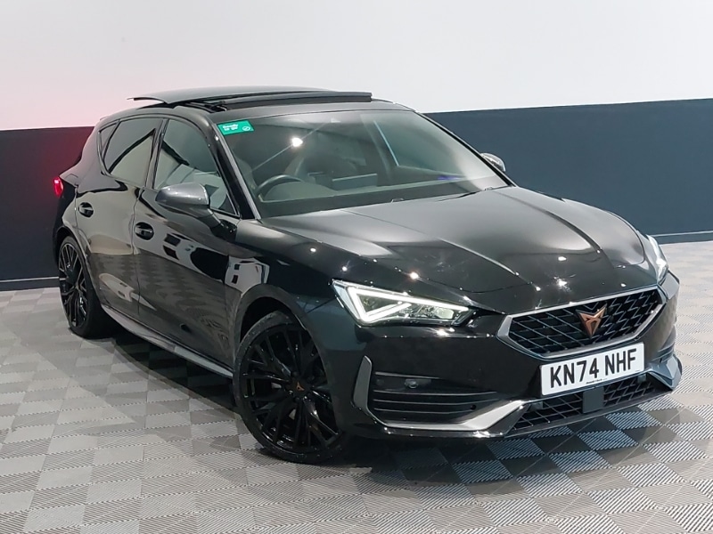 0 Previous Owners, Digital cockpit, Panoramic sunroof, Dynamic and comfort pack Leon Cupra, Design pack Cupra Leon, Media system plus with navigation pack Leon Cupra, 19" Performance satin black and copper alloy wheels with 91Y tyres, Sports bucket seats, CUPRA drive profile selection with 4 modes (Comfort/Cupra/Sport/Individual), throttle response and gearshift mode, Front assist with forward collision warning braking reaction to vehicles, pedestrians and cyclists, Full link smartphone integration with Mirror Link, wireless Apple CarPlay and wired Google Android Auto, Lane assist, Rear view camera, Wireless phone charger, 10 amp mode 2 charging cable, 16 amp mode 3 charging cable, 3.6 kw Onboard charger, Auxiliary input socket, LED front fog lamps with cornering function, LED headlights with dynamic turn signals, tail lights, rear fog lights with rear coast to coast lighting, Four x USB Type C ports (2 in front and 2 in rear)