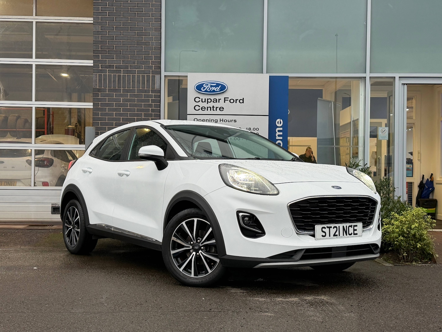 CuparInsurance Group 12, 0 Previous Owners, 3 rear seatbelts, Autonomous emergency braking, Child safety lock, Electronic stability control (ESC) and hill start assist, Pedestrian/cyclist detection and postcollision braking, Pre collision assist system, Tyre pressure monitoring system (TPMS), Colour 4.2 inch TFT analogue instrument cluster, Cruise control with Intelligent speed assist, Driver impairment monitor, Emergency call service, Ford easy fuel, Lane keeping aid with lane departure warning, Manual tailgate, Power assist steering, Power start button, Rear parking sensor, Selectable drive modes(Normal, Eco, Sport, Slippery and Trail), Speed sign recognition, Automatic headlights with auto high beam, Automatic rain sensing wipers, Body colour rear spoiler, Body coloured door mirrors, Body coloured roof, LED rear lamps, Power foldable heated door mirrors with puddle lamps, Projector headlamps with LED day time running lights and front fog lamps, Quickclear heated windscreen, Rear side wing doors, Rear wiper, Solid paint, Third brake light, 3 seat bench in 2nd row, Centre console with armrest and stowage, Electronic automatic temperature control (EATC), Ford megabox extended bootspace, Front and rear head restraints, Front floor mats, Manual 2 way passenger seat adjustment, Manual 4 way driver seat adjust with lumbar adjustment, Sensico leather steering wheel/gear knob/handbrake, Single front passenger seat, Titanium cloth upholstery, Ford SYNC 3 navigation pack Puma, Standard suspension, Thatcham alarm, 17 inch 10 spoke absolute black machined finish alloy wheel, Tyre inflation kit