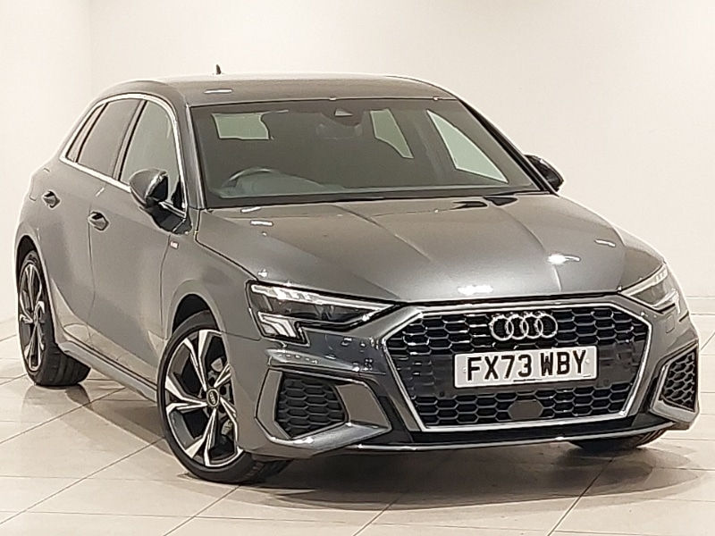 NottinghamInsurance Group 15, 0 Previous Owners, Android Auto, Apple CarPlay, Cruise control, LED daytime running lights, LED Headlights, Rear parking sensor, Audi drive select (Auto, Comfort, Dynamic and Individual), Camera based traffic sign recognition, Automatic start/stop system with recuperation, Audi Virtual Cockpit 10.25" digital and colour instrument cluster, Audi smartphone interface, Lane departure warning system, MMI Navigation Plus with high resolution 10.1" colour touch screen display, Rear parking sensors, Voice control system with natural language interaction, Sports suspension, 6 passive loudspeakers, 2xUSBC connection with data and charging functions, LED daytime running lights, LED headlights with LED rear lights and dynamic rear indicators, Light and rain sensors, Privacy glass dark tinted rear window, rear door and side windows, S line bumpers, 4 way electrically adjustable lumbar support for driver and front passenger, 60/40 split folding rear seat bench, Dual zone electronic climate control, Interior lighting glove compartment light and right hand side, Black cloth headlining, LED interior lighting pack A3 Sportback, S line styling pack A3 Sportback, Aluminium interior elements pack A3 Sportback, Dark spectrum aluminium inlays, accent surfaces in the dashboard and centre console in platinum grey silk effect paint finish