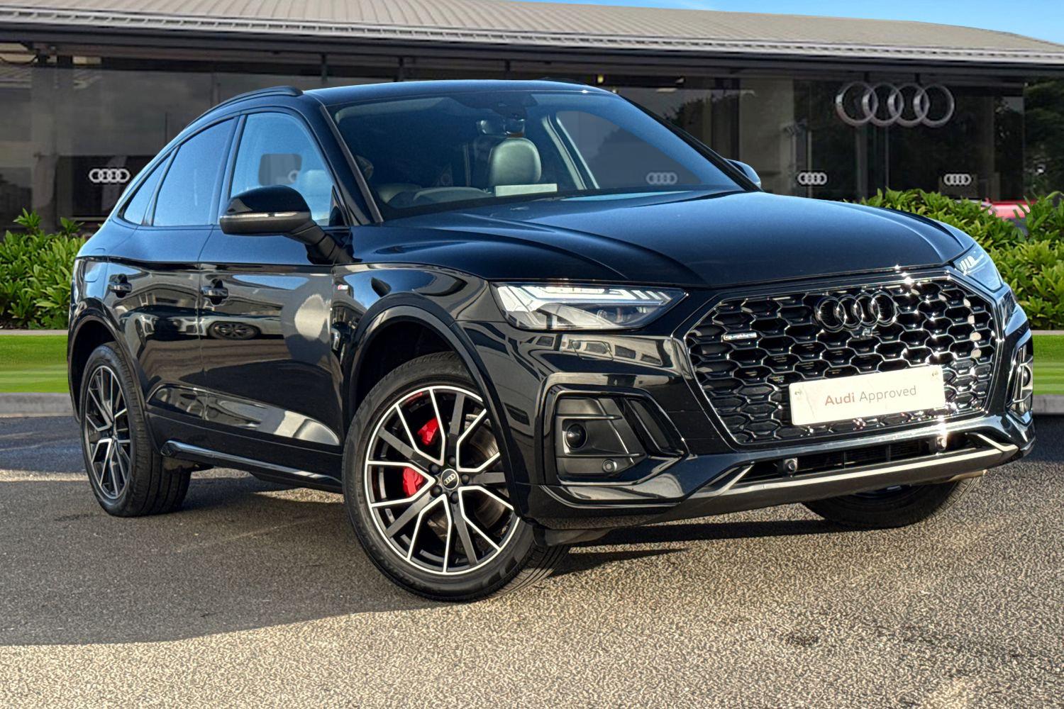 CreweInsurance Group 38, 2 Previous Owners, Check out this Audi Approved Q5 Sportback Edition 1 TDI Quattro in Mythos Black with its 20" 5Vspoke star design alloy wheels which look superb out on the roads. The Matrix LED headlights with LED rear lights and dynamic rear indicators, create that strong visibility in all weather conditions. This Q5 comes fitted with some excellent features, such as the reversing camera which creates that additional vision and assists greatly whilst maneuvering those tighter spaces. The heated front seats are perfect for those cooler mornings. Planning and following routes is a breeze, thanks to the MMI Navigation Plus with MMI Touch. ISOFIX child seat mounts are fitted to this Q5, making it the perfect vehicle for the whole family to enjoy. Another great feature, is the 4way lumbar support for the front seats, which maximises comfort behind the wheel. The multimedia interface allows the driver and front passenger to access a range of different media, such as Apple Carplay and Android Auto, allowing you to use apps like Spotify, Google Maps, Apple Music and other apps also. The Audi drive select feature lets you choose your prefered drive mode on any journey, for a more personalised driving experience. The driver assist can also be adjusted to your driving preference on all journeys. DAB/FM radio is fitted to this vehicle which gives a larger variety of stations for all passengers and driver to listen to and enjoy on any journey in this vehicle. The inter...