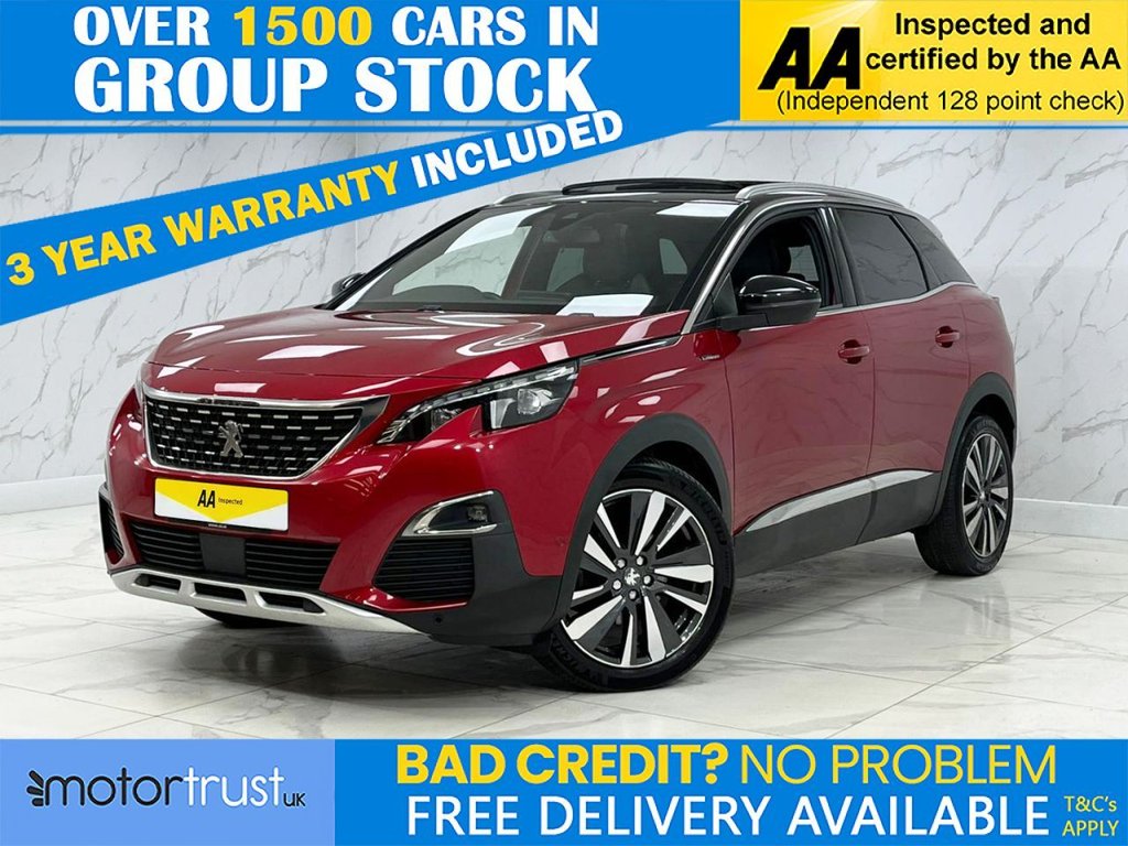Insurance Group 18, 1 Previous Owner, This 2019 Peugeot 3008 BlueHDi GT Line Premium boasts a full service history and a clear vehicle history check, offering you complete peace of mind. This stylish SUV is powered by an efficient 1.5 litre Euro 6 diesel engine, ensuring a smooth and economical drive. Inside, youll find a host of premium features designed for comfort and convenience, including full LED headlights for excellent visibility, a visibility pack with automatic headlights, and Bluetooth for seamless phone connectivity. Enjoy the added luxury of heated front seats with a driver seat multipoint massage function, and a sophisticated blue ambient lighting to the head up instrument panel. The Peugeot 3008 GT Line Premium stands out with its impressive fuel economy, achieving up to 59 miles per gallon, which is better than many other vehicles in its class. It also benefits from a low CO2 emission rating and a low insurance group, making it an economical choice for everyday driving. Furthermore, youll appreciate the generous boot space, perfect for accommodating luggage or shopping. This combination of efficiency, practicality, and premium features makes this 3008 a truly compelling option. Part Exchange Welcome. All Majors Cards Accepted. We Have Finance Available. A Wide Range of Warranties. We Also Offer Low Cost, Nationwide Delivery Available From £1.50 a Mile. **Every endeavour is made to ensure specifications and descriptions are correct. Due to model changes specification may vary. Phone for details. MPG figures shown are government official figures.**.Imila Leather EffectCloth Mistral, Ultimate Red, Longitudinal Adjustment to Cushion Nose, 13 23 Folding Rear Seat Magic Flat Modularity with Controls Accessible From the Boot, 12V Sockets x3 Dashboard Rear Cabin and Load Area, 180 Degree Colour Reversing Camera with Wash System, 19in Alloy Wheels Washington Diamond Cut, 230V Socket, 3D Connected Navigation, 6Speaker Radio MP3 Compatible, ABS AntiLock Braking System with REF Electronic Braking Distribution and AFU Emergency Braking Assistance, Aikinite Contrast Stitching to Armrest Gear Lever Gaiter and Dashboard Facia, Air Conditioning Automatic Dual Zone Climate Control, Airbags Adaptive Driver and Front Passenger, Airbags Driver and Front Passenger Side, Airbags Front and Rear Curtain, Alarm, Aluminium Longitudinal Roof Bars, Automatic Door Locking When Moving Off, Automatic Hazard Light Activation Upon Heavy Brake Application, Blue Ambient Lighting for Connecting Zone, Blue Ambient Lighting to Front Door Panels Central Storage and Cupholders, Blue Ambient Lighting to HeadUp Instrument Panel, Bluetooth Telephone Facility, Body Protectors in Black, Central Front Armrest with ButterflyWing Opening and Illuminated Compartment, Chrome Front Fog Light Trim, DAB Digital Radio, DSC Dynamic Stability Control and ASR Electronic AntiSkid System, Dark Tinted Rear Side and Tailgate Windows, Dashboard Front and Rear Door Panel Finish Brumeo Fabric, Dashboard Trim Satin Chrome, Door Mirror Mounted LED Peugeot Lion Approach Lights, Door Mirror Shells Nera Black, Electric Child Locking Functionality on Rear Windows and Doors, Electric Parking Brake includes Hill Assist, Electric Power Steering with Reach and Rake Adjustable Steering Column, Electronic Code Immobiliser, Exterior Door Handles BodyColour, Exterior Temperature Indicator with Ice Warning, Fixing Rings x4 in Load Area, Flocked Front Door Pocket Interior, Flocked Glove Box Interior, Front Bumper Scuff Plate in Lion Grey, Front Central Console with Two CupHolders, Front Door Panel Recess Trim Satin Chrome, Front Interior Light with Reading Spotlights x2 and Rear Interior Light with Timer, Front Optimised Safety Headrests and Rear Retractable Headrests x3 HeightAdjustable, Front ThreePoint Retractable Seatbelts HeightAdjustable with PreTensioners and Force Limiters, Front Windscreen Wiper with Magic Wash Cleaning System, Front Wing Trim Black with Chrome Detail, Front and Rear Parking Sensor