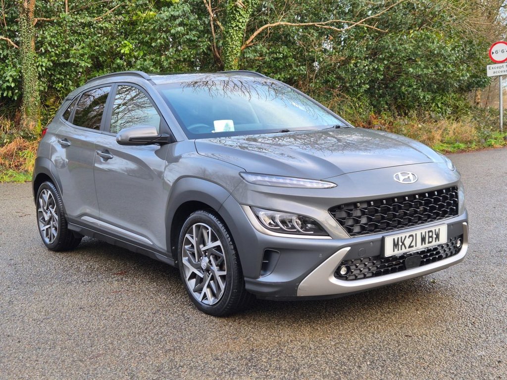 SaltashInsurance Group 9, 1 Previous Owner, Discover this 2021 Hyundai KONA hGDi Ultimate, a hybrid petrol model with remarkably low mileage for its age, having covered just 27,903 miles. This Euro 6 compliant vehicle offers a smooth driving experience with its 1.6L engine and comes equipped with desirable features such as climate control air conditioning, a rear camera and guidance system for effortless parking, and automatic headlights that activate with a dusk sensor. Stay connected on the go with Android Auto phone integration, and enjoy added comfort thanks to the heated front seats. This KONA Ultimate stands out with its impressive fuel economy, achieving a highlight of 55 mpg, which indicates it is more economical than many similar vehicles. Furthermore, its low CO2 emissions and low insurance group highlight its cost effectiveness, making it a sensible choice for everyday driving. Family Run. Trusted for 21 Years. Quality You Can Drive Away In.12V Power Outlet Front Console, 18in Alloy Wheels, ABS AntiLock Brake System, Adjustable Head Restraints, Air Conditioning Climate Control, Airbags Front Front Side and Curtain Airbags, Alarm and Immobiliser, Armrest Rear Centre, Automatic Dimming Rear View Mirror, Automatic Headlights with Dusk Sensor, Automatic Windscreen Wipers with Rain Sensor, Blind Spot Collision Avoidance Assist, BlueLink, Bluetooth Connectivity, Body Garnish Painted Anthracite, Central Locking Remote Control, Centre Console Display 10.25in Touchscreen Satellite Navigation Mapcare LIVE Services, DBC Downhill Brake Control, Daytime Running Lights LED, Digital Clock, Door Mirrors Body Coloured, Door Mirrors Power Folding, Driver Attention Alert DAA, Drivers Digital Supervision Instrument Cluster 10.25in, Drivers Seat Electric Adjustments, Electric Parking Brake, Electric Tilt and Slide Glass Sunroof, Electric Windows AntiTrap Mechanism Driver, Electric Windows Front and Rear, Electric Windows One Touch Controls Driver, Electronic Stability Control ESC, Exterior Door Handles Body Coloured, Forward Collision Avoidance Assist with Pedestrian and Cycle Detection FCA, Front Fog Lights, Front Passengers Seat Electric Adjustments, Front Passengers Seat with Height Adjustments, Front Seat Back Pockets Driver and Passenger Seat, Front Ventilated Seats, HAC HillStart Assist Control, Head Restraints Rear with Vertical Adjustment, Head Up Display HUD, Headlights LED, Heated Front Seats, Heated Rear Seats, Heated Steering Wheel, Highway Drive Assist, Indicator Lights Door Mirror, Intelligent Speed Limit Warning ISLW, Interior Door Handles Metal Paint Effect, Interior Light Ambient Lighting, Interior Light Centre, Interior Light Front, Interior Light Luggage Compartment, Lane Follow Assist LFA, Lane Keep Assist LKA, Leading Vehicle Departure Alert LVDA, Leather Wrapped Steering Wheel and Gear Knob, Luggage Hooks, Luggage Net, Motor Driven Power Steering MDPS, Parcel Shelf, Parking Sensors Front, Parking Sensors Rear, Parking System Rear Camera and Guidance System, Phone Connection Android Auto, Phone Connection Apple CarPlay, Positioning Lights LED, Privacy Glass Rear Side Window and Tailgate, Radio RDS and Digital Radio DAB, Rear Cross Traffic Alert RCTA, Rear Lights LED, Rear Seat Alert, Rear Spoiler with Integral LED Brake Light, Roof Rails, Safe Exit Warning SEW, Seatbelt Fixed 3 Point f