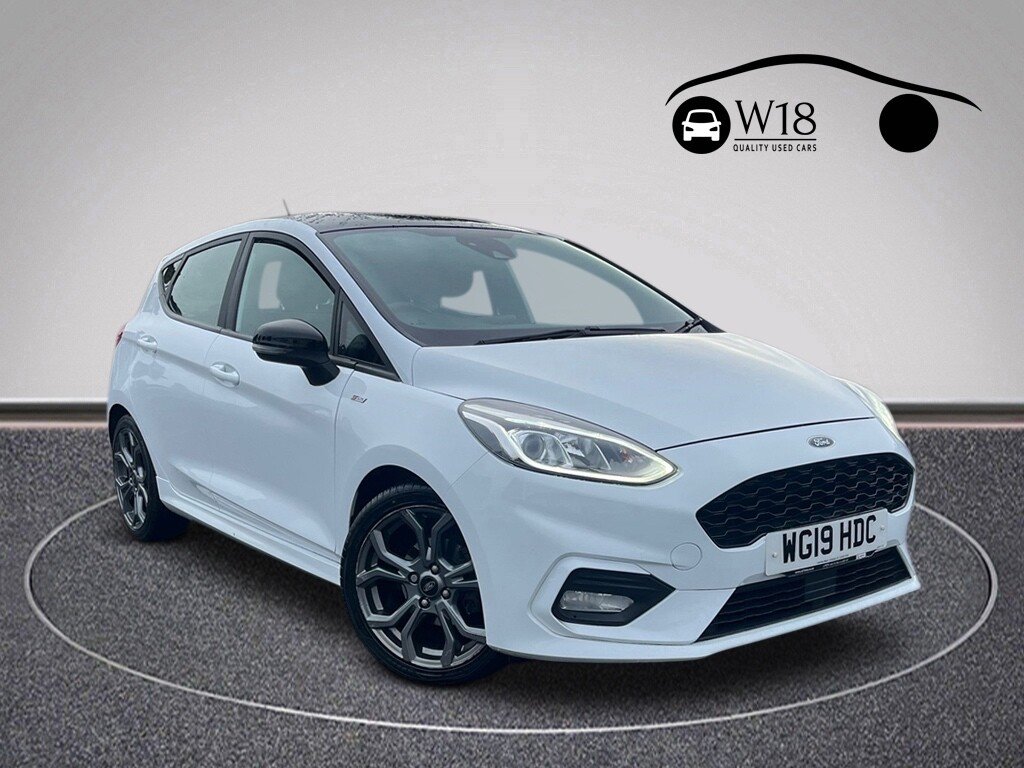 ColneInsurance Group 10, 2 Previous Owners, Enjoy peace of mind with an MOT valid until January 2027 on this 2019 Ford Fiesta T ST Line. This stylish hatchback is powered by an efficient 1.0 litre petrol engine, meeting Euro 6 emissions standards and contributing to its low CO2 emissions. The ST Line trim offers a sporty feel, and this particular model comes with a 6 month warranty for added reassurance. While it has partial service history (15,856, 32,446, 39,682, 54,557), the MOT validity until early 2027 provides confidence in its roadworthiness. This Ford Fiesta is equipped with a user friendly Ford SYNC system featuring a touchscreen, DAB radio, and seamless integration with Apple CarPlay and Android Auto. For your convenience, it also includes Bluetooth connectivity, manual air conditioning, and automatic headlights that switch on and off as needed. Demonstrating its responsive performance, this Fiesta can accelerate from 0 to 62mph in just 10.6 seconds, a figure that highlights its agility compared to other vehicles in its class. All of our vehicles are subject to our Compulsory Care Package at a cost of £199, which comes with a comprehensive 6 Month Warranty and 6 Month Breakdown Cover, along with many other benefits (Full details on W18cars.co.uk). We are always happy to offer part exchange and if you speak to us or call in we will endeavour to help make your purchase hassle free. Contact us to find out more..17in Alloy Wheels STLine 5spoke Rock Metallic, Air Conditioning Manual, Airbags Driver and Front Passenger, Airbags Front Side Impact, Airbags Front and Rear Side Curtain, AntiLock Braking System ABS with Electronic Brake Force Distribution EBD, Black Belt Line Finisher, Centre Console with Two Cupholders and 12V Power Point, Courtesy Light Front Map Light and Rear Overhead LED, Door Handles Body Colour, Door Lever Chrome Finish, Door Mirrors Heated Electric Integrated Side Indicators Body Coloured, EPAS Electric Power Assisted Steering, Electric Windows Front, Emergency Brake Warning Automatic Hazard Warning Lights, Enhanced Electronic Stability Control ESC with Traction Control Emergency Brake Assist EBA Hill Start Assist HSA and Trailer Sway Control, Ford EasyFuel Capless Refuelling System, Ford SYNC with Touchscreen DAB Radio Apple CarPlay and Android Auto, Front Bumper Unique STLine, Front Door Threshold Plates STLine, Front Seat Drivers Manual Height and ForeAft Adjustment, Front Seats Sports Style, Gearshift Knob LeatherTrimmed with Aluminium Insert, Glovebox Illuminated, Headlights Automatic OnOff, Headlights Halogen Projector with Black Bezel and Dedicated LED Daytime Running Lights, Headliner Black Woven, IPS Intelligent Protection System, Keyless Start with Ford Power Start Button, Large Rear Spoiler Body Colour with Centre High Mounted Stop Light, LeatherTrimmed Handbrake, MyKey, NCAP Pack, Overhead Console Sunglasses Holder, Quickclear Heated Windscreen, Rear Bumper Unique STLine, Rear Fog Lamps, Rear Lights NonLED, Rear Seat 6040 Split Back and Cushion, Remote CentralDouble Locking, STLine Front Fog Lamps with Cornering Lights, STLine Side Skirt Body Mouldings Body Colour, Seats ISOFIX Mounting Provision for Child Seats, Sports Pedals, Sports Tuned Suspension, Steering Column Rake and Reach Adjustment, Steering Wheel STLine 3Spoke Leather Trimmed Flat Bottomed, Tailgate WashWipe, Thatcham Category 1 Alarm, Trip Computer, Tyre Pressure Monitoring System TPMS, Tyre Repair Kit, Unique STLine Upper Grille and Full Bodystyling Kit with STLine Wing Badges, Warning Triangle Storage, Wipers Standard with 6 Speed Interval Settings