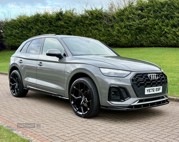 0 Previous Owners, December 2022 Audi Q5 40TDI Quattro SLine STronic in Chronos Grey. Full Service History. Mot'd to December 2026.Loaded with spec including Half Leather / Alcantara Interior, Heated Seats, Tech Pack, Virtual Cockpit, Navigation System, Phone Booster, LED Headlights, Privacy Glass, Audi Drive Select, DAB Radio, MultiFunctional Steering Wheel, Side Steps, Aero Styling Kit etc.Fitted with Brand New 22" Alloys & Tyres (Optional Extra £1395)FINANCE AVAILABLE AT KEEN RATES!!
