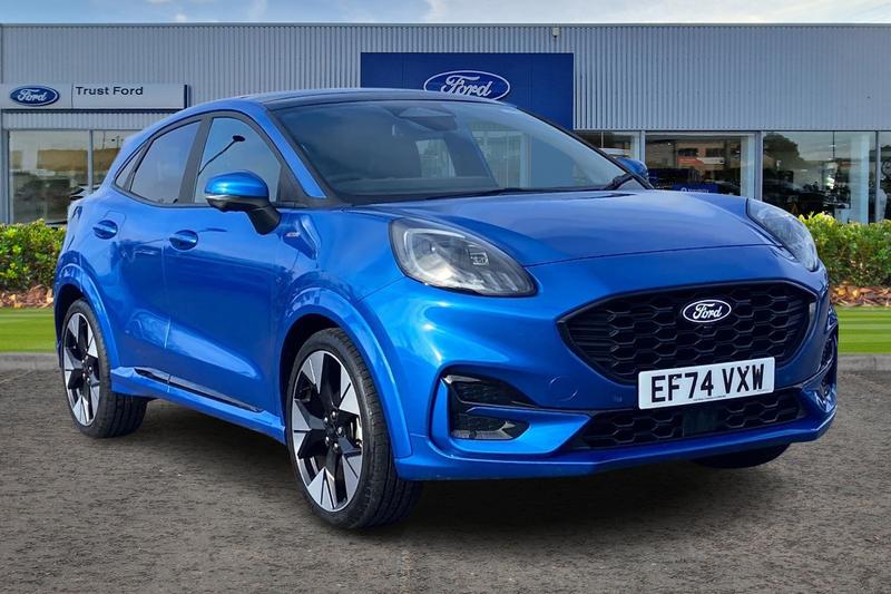 CastlefordInsurance Group 12, Drivers Assistance Pack, BLIS Blind Spot Information System, Adaptive Cruise Control, Panoramic Glass Roof , Heated Seats, Heated Steering Wheel, Power Tailgate, 360 Camera, Bang Olufsen Sound System , Satellite Navigation System, Front + Rear Parking Sensors , Charging Mat, Part Leather Seats , Climate Control, Push Button Start, Privacy Glass, Cruise Control + Speed Limiter, Quickclear heated windscreen, Driver impairment monitor, Emergency call service, Ford easy fuel, Full digital 12.8 instrument cluster, Lane keeping aid with lane departure warning, Power assist steering, Selectable drive modes(Normal, Eco, Sport, Slippery and Trail), Speed sign recognition, Automatic headlights with rain sensing wipers and auto high beam, Front fog lamps, LED daytime running lights, LED rear lamps, LED third brake light, Power foldable heated door mirrors with puddle lamps and puma logo protection, Rear side wing doors, Rear wiper, STLine X body styling kit, 3 seat bench in 2nd row, 4 way lumbar support for passenger seat, Centre console with armrest and stowage, Ford megabox extended bootspace, Front and rear head restraints, Front floor mats, Manual 4 way driver seat adjust with lumbar adjustment, Single front passenger seat, 3 rear seatbelts, Child safety lock, Electronic stability control (ESC) and hill start assist, Precollision assist with autonomous emergency braking, pedestrian/cyclist detection & postcollision braking, Tyre pressure monitoring system (TPMS)