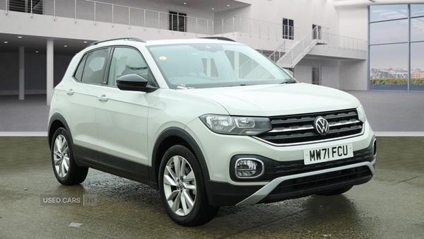 LisburnInsurance Group 11, 0 Previous Owners, The Volkswagen TCROSS 1.0 TSI 110 Active offers practical motoring with a low mileage of just 7,183. Designed for everyday use, it provides a smooth and efficient drive through its manual transmission and 110 bhp petrol engine. The vehicle's advanced safety systems, such as adaptive cruise control, lane assist, and blind spot monitoring, contribute to a confident and secure driving experience. Features like automatic hazard light activation and autonomous emergency braking further enhance everyday peace of mind.The exterior presents a sophisticated finish in grey, complemented by black roof rails, body colour door handles, and body coloured bumpers for a cohesive appearance. Details such as the high gloss radiator grille with a chrome strip and LED rear lights enhance its modern look. The vehicle includes rear tinted glass and a tailgate with an integrated roof spoiler, contributing to both style and practicality. Electrically foldable, adjustable, and heated door mirrors with reverse activated kerb view adjustment ensure enhanced visibility in varied driving conditions.Inside, the TCROSS features trapeze cloth upholstery, ambient lighting, and brushed stainless steel pedals for a refined atmosphere. Flexibility is provided by a 60/40 split folding rear seat backrest, moveable and foldable rear bench seat, and a variable boot floor. Comfort is prioritised with front seats offering adjustable lumbar support, a height and reach adjustable steering wheel, and heating and fresh air system with a fourstage blower.Specification highlights include a threespoke multifunction leathertrimmed steering wheel and gearknob, Bluetooth telephone and audio connectivity, and support for Apple CarPlay, Android Auto, and MirrorLink. Driver aids such as a multifunction computer, speed limiter, and driver alert system come as standard. For safety, antilock braking with hydraulic brake assist, multiple airbags, hill start assist, tyre pressure loss indicator, and an electronic engine immobiliser are provided. Our dealership is 5* rated, offering Volkswagen roadside assistance and remote tailgate unlocking using the key fob for added convenience