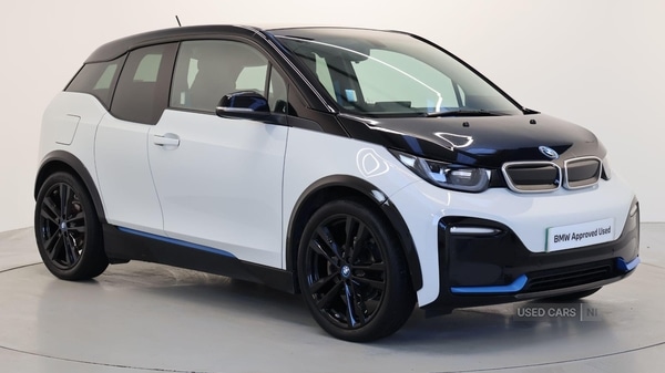 Coleraine0 Previous Owners, This 2021 BMW i3 S is a superb example, having had only one owner since new. As a fully electric vehicle, it boasts a 42 kWh battery. Charging is convenient, with a full charge at home using a 7kW charger taking approximately 5 hours and 15 minutes, while rapid public charging can replenish the battery from empty to 80% in just 40 minutes.The i3 S variant delivers an exhilarating driving experience, accelerating from 0 to 62 miles per hour in a swift 6.9 seconds. This impressive performance, combined with its electric powertrain and efficient charging capabilities, positions it as a compelling choice for those seeking a dynamic and environmentally conscious vehicle that stands out from the crowd. Tyre Repair Kit, Multifunction Controls on Steering Wheel, Alarm System, Charging cable (Mode 2), Charging cable Professional (Mode 3), 22KW High Speed Charging, DC Rapid Charging, eDrive Exterior Sound, Ext. mirrors folding with antidazzle, Front Armrest, Heated front seats, Auto headlights with rain sensor, Automatic Air Conditioning, Cruise Control, BMW Emergency Call, BMW TeleServices, BMW Online Services and Apps Interface, Real Time Traffic Information, Connected eDrive Services, Smartphone Integration, BMW Navigation System Pro, DAB Radio, Comfort Pack, 20'' BMW i Doublespoke style 431 alloy w, Dark Oak Wood Matt Interior Trim, Blue Seat Belts, Sun Protection Glass, Park Distance Control front and rear, Interior world Suite. White 4 seats. BMW Approved Used Car