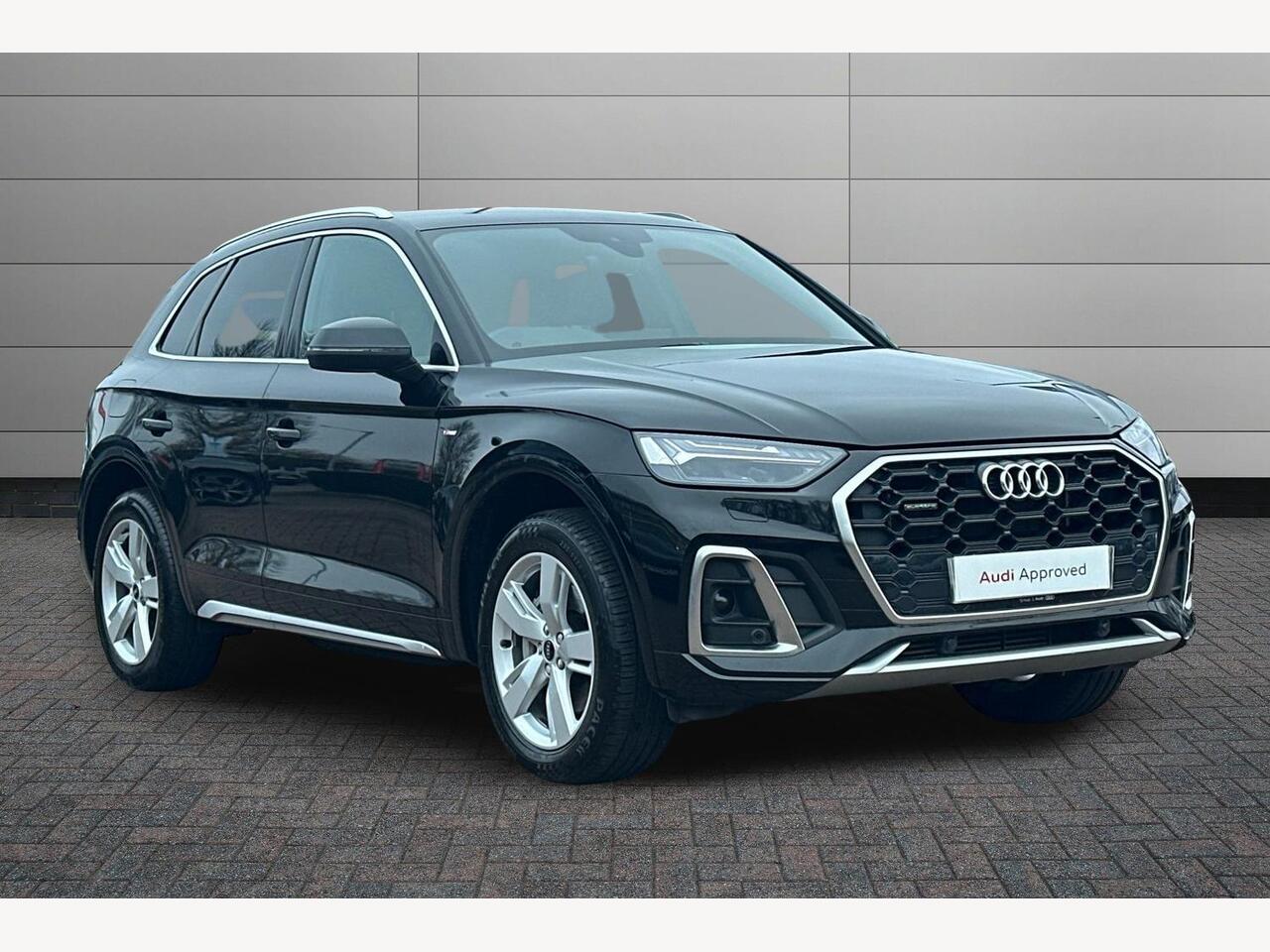 StockportInsurance Group 43, 0 Previous Owners, Audi connect safety and service (ecall), Audi connect with Amazon Alexa Integration, Audi drive select, Audi virtual cockpit plus with 12.3" screen and three different layout designs, Audi wireless smartphone interface, Automatic startstop system with coasting functionality and efficiency programme, Bluetooth interface, Electro mechanical power assisted steering, MMI navigation plus with 10.1" touch screen, Power tailgate, Reversing camera, Service interval indicator, Voice control system with Audi hotword activation "Hey Audi", 3 pin 10 amp domestic charging cable, 7.4 kW onboard charger, Dynamic suspension, Quattro on demand, Type 2 mode 3 22kW 32 amp charging cable, Type 2 socket for AC charging, 2 x USB charging port with aux input socket, DAB Digital radio, 3rd brake light, Acoustic windscreen, Aluminium roof rails, Audi matrix LED headlights with dynamic front and rear indicators, Auto dimming rear view mirror, Automatic headlights and windscreen wipers, Body colour bumpers, Body colour door mirrors, Body colour rear diffuser with matt aluminium silver surrounds, Body colour underbody protection, Chrome plated exhaust trims, Daytime running lights, Door sills in Selenite silver, Electric adjustable/heated/folding door mirrors, Front air inlet surrounds in aluminium, Front and rear electric windows, Front radiator grille in honeycomb design, Headlight washers, Lower bumpers painted in contrast Manhattan grey, Rear chrome trim strip below lights, Rear privacy glass and rear side windows, Rear side wing doors, Rear spoiler, Rear wiper, Roof bars, S Line badges on the front wings, S Line front and rear bumpers, S Line side skirts, 3 rear headrests, 40:20:40 split folding 3 rear bench seat in 2nd row with rear centre armrest, Black cloth headlining, Comfort front centre armrest, Contrast stitching on seats, steering wheel and gear lever gaiter, Deluxe 3 zone electronic climate control, Front/rear floor mats, Gear lever in black leather, Heated front seats, Height adjustable front head restraints, Height/reach adjustable steering column, Illuminated door sill trims with S logo, ISOFIX child seat mounting and top tether, Manual seat adjustment with 4way electric lumbar support, Rear seat bench plus, Single front passenger seat, Sunvisors with vanity mirrors, Trunk roller cover, High gloss pack Q5, LED interior light pack Q5, 3 point seatbelts on all seats, 6 airbags Driver, front passenger, curtain and side airbags, Electrically operated child