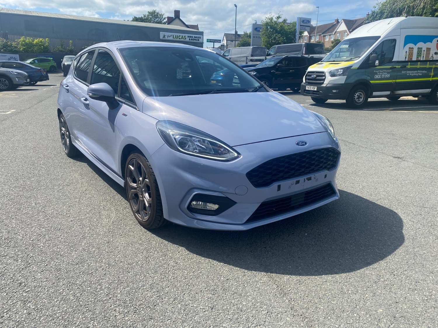 Llandudno JunctionInsurance Group 11, 1 Previous Owner, ..Bluetooth system, Electric power steering, Ford easy fuel, Ford SYNC 3 Navigation system incl 8'' touchscreen, 7 speakers, FordPass connect, Apple carplay, android auto, voice control and emergency assistance, Rear parking distance sensors, Selectable drive modes (Normal, Sport, Track), Trip computer, Sports suspension, 2 USB ports, Auxiliary input socket, DAB Digital radio, Steering wheel mounted controls, Body colour bumpers, Body colour door handles, Body colour large rear spoiler, Body coloured electrically operated and heated door mirrors with side indicators, Cornering front fog lights, Electric front windows/one touch facility, Electric rear windows, LED Night signature to rear lights, Quickclear heated windscreen, Rain sensing wipers and auto dimming rear view mirror, Rear privacy glass, Rear wiper, Unique STLine upper grille & full bodystyling kit with STLine wing badges, 3 spoke flat bottomed leather steering wheel, 60/40 split folding rear seat, Adjustable head restraints, Black headlining, Boot carpet, Centre console with opening armrest, 2x cupholders, 12v and USB, Chrome inner door handles, Cloth upholstery, Footwell illumination, Front floor mats in velour, Front map reading lights, Front seat and rear pockets, Illuminated glovebox, Leather gaiter, Load area light, Manual 2 way passenger seat adjust, Manual 4way driver seat adjust, Manual air conditioning, Overhead console with sunglasses holder, Pollen filter, Rake/reach adjustable steering wheel, Sensico wrapped steering wheel, Sports front seats, NCAP Pack Fiesta, 3 point seatbelts on all rear seats, ABS+EBA, Curtain airbags, Driver and passenger airbags, Drivers knee airbag, Electronic stability control with hill start assist, Front passenger airbag deactivation, Front side airbags, Seatbelt warning, Two tone horn, Tyre pressure monitoring system, Keyless start with 'Ford Power' starter button, MyKey system, Remote central locking & engine immobiliser, Thatcham Cat.1 alarm, 17'' 5 spoke alloy wheels with rock metallic finish
