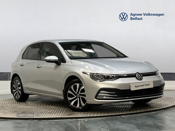 BelfastInsurance Group 17, 1 Previous Owner, Agnew Volkswagen Belfast are delighted to offer this striking 2022 Volkswagen Golf 8 Active 1.5 TSI 130PS 6speed Manual 5 Door with Winter Pack with Heated Front Seats and Hated Steering Wheel 16" 'Galway' Alloy Wheels DAB Radio Discover Media Navigation System with AppConnect for Apple CarPlay and Android Auto Adaptive Cruise Control "KeylessGo" 3zone Electric Air Conditioning Dynamic road sign display Active styling pack with Bodycoloured bumper and Decorative inserts for 'Active' edition Front and Rear Parking Sensors 30 Colour Interior Ambient Lighting LED Headlights Full Volkswagen service history