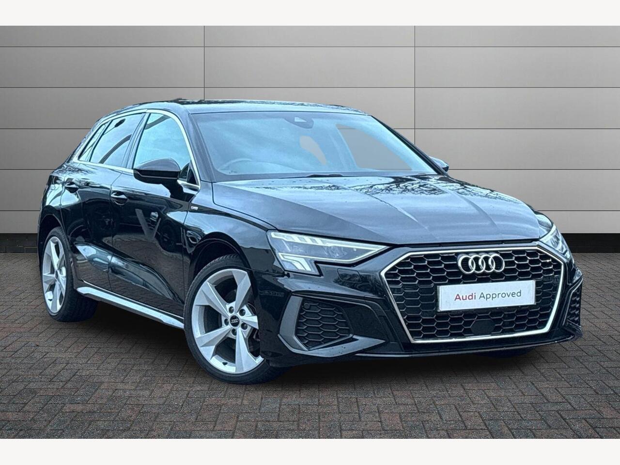 Whetstone1 Previous Owner, Audi drive select (Auto, Comfort, Dynamic, Efficiency and Individual), Audi smartphone interface, Audi Virtual Cockpit 10.25" digital and colour instrument cluster, Automatic start/stop system with recuperation, Bluetooth interface, Collision avoidance assistant, eCall (emergency call), Electromechanical power speed sensitive steering, Lane departure warning system, MMI Navigation Plus with high resolution 10.1" colour touch screen display, Service indicator, Trip computer, Voice control system with natural language interaction, 3 pin 10 amp domestic charging cable, 3.6 kw Onboard charger, Standard suspension, Type 2 mode 3 32 amp charging cable, Type 2 socket for AC charging, 2xUSBC connection with data and charging functions, 6 passive loudspeakers, DAB Digital radio, 3rd brake light, Acoustic glass windscreen, Aluminium window trim, Auto dimming frameless rear view mirror, Electrically adjustable/heated/folding/auto dimming door mirrors with integrated LED indications + kerb view function for passenger side, Front electric windows, Illuminated aluminium inserts front door sills with S logo, LED daytime running lights, LED headlights with LED rear lights and dynamic rear indicators, Light and rain sensors, Privacy glass dark tinted rear window, rear door and side windows, Rear electric windows, Rear side air outlets in grained matt black, Rear side wing doors, Rear wiper, S line bumpers, S roof spoiler, 12V socket and storage compartment in front centre console, 3 seat bench in 2nd row, 40/20/40 split folding rear seat bench with cupholder, Black cloth headlining, Dual zone electronic climate control, Front and rear centre armrest in leather, Front and rear headrests, Front/rear floor mats, Height and reach adjustable steering wheel, Illuminated vanity mirror, Interior lighting glove compartment light and right hand side, Luggage compartment floor covering, Manual boot compartment lid, Manually adjustable front seats, Seat side bolsters, Single front passenger seat, Stainless steel pedals and front footrest in black, Twin leather upholstery with front sports seats S embossed logo, Aluminium interior elements pack A3 Sportback, S line styling pack A3 Sportback, 3x3 point rear seat belts, Audi pre sense front, Driver and front passenger airbag with passenger airbag deactivation, Electronic Stabilisation Control (ESC) including ABS, ASR and EDL, First aid kit with warning triangle and 2 safety vests, Front side airbags with head airbags and