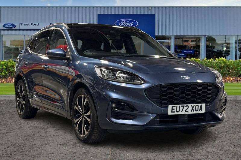Insurance Group 20, 12.3 digital colour instrument cluster, Ford easy fuel, Ford SYNC 3 with 8 TFT LCD touchscreen, App Link, andriod auto/apple carPlay, emergency assistance and navigation with Ford pass connect, Front and rear parking sensors, Hands free power tailgate, Lane keeping aid with lane departure warning, Power assist steering, Rear view camera, Selectable drive modes, Service interval indicator, Auto headlamps with high and low beam, Black roof rails, Body colour bumpers, Day/night rear view mirror, Front LED fog lamps, Large rear roof spoiler, LED daytime running lights, LED rear lights, Power folding, electrically adjustable and heated door mirrors with puddle lights, Power front/rear windows with global close, Power opening panoramic roof, Quickclear heated windscreen, Rain sensing wipers, Rear privacy glass, Rear side wing doors, Rear wiper, ST Line body styling kit with unique front and rear fascia and bumper, rear painted diffuser, front painted skid plates, dark mesh upper grille, ST Line front scuff plates, Third brake light, Twin exhausts, 2nd row sliding seats with 60:40 split, Alloy pedals, Centre console with electronic parking brake, Dark headlining and pillars, Electronic automatic temperature control (EATC), Flat bottomed leather steering wheel in sensico with red stitching, Front and rear head restraints, Heated passenger and driver seats, Heated rear seats, Heated steering wheel, Partial premium touch Sensico with black cloth inserts and red stitching, Rear