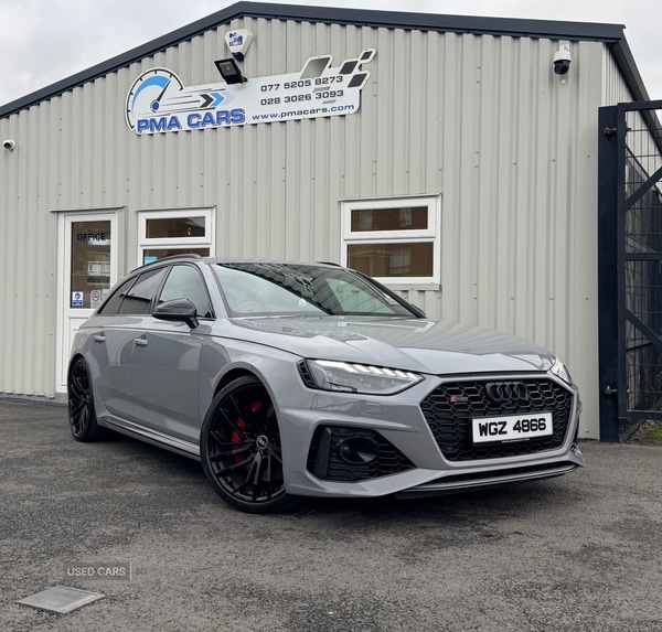 Newry2022 Audi RS4 Carbon Black450 BHP Automatic QuattroGreat Finance packages availableOnly 33,000 MilesNardo Grey with Black leather interior20" Alloy wheelsRear privacy glassCarbon exterior packCarbon interior packLed daytime running lightsXenon headlightsLed taillights360 degree camerasParking sensorsVirtual dashSatellite navigationBang and olufsen premium sound system Power tailgateRS sports seatsValcona leather interior with perforated honeycomb and RS letteringAir conditioningCruise controlExcellent condition throughoutInstant inhouse finance. Drive away todayAll Finance packages can be adjusted to best suit your budgetLow deposit options availableCredit and debit cards accepted£52000077520582730776370514202830263093