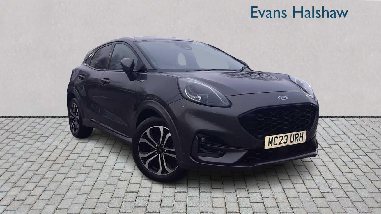 Insurance Group 12, 17in Alloy Wheels 5x2 Spoke Black Machined Finish, Acoustic Laminated Windscreen, Active Grille Shutter, Ecoboost Hybrid Tailgate Badge, Electric Windows Front and Rear, Front Bumper Unique STLine Sport Design Body Colour, Large Rear Spoiler Body Colour with Centre High Mounted Stop Light, Locking Wheel Nuts, Lower Bodyside Moulding Body Colour, PowerFoldable Heated Door Mirrors with Puddle Lamps, Puma Badge, Quickclear Heated Windscreen, Rear Bumper Body Colour Diffuser, STLine Badge, STLine Body Styling Kit, Tailgate Manual, Tyre Inflation Kit, ABS Antilock Braking System, ESC Electronic Stability Control and Hill Start Assist, Emergency Brake Warning Automatic Hazard Warning Lights, First Aid Kit Strap, Lane Keeping Aid with Lane Departure Warning, Post Collision Braking, Remote CentralDouble Locking, Thatcham Alarm, Traction Control and Emergency Braking Assistance, Automatic Headlights with RainSensing Wipers and Auto High Beam, Cruise Control with Intelligent Speed Assist, Ford SYNC 3 Navigation, Front Fog Lights, Intelligent Speed Assistance, LED rear lights, Power Steering, PreCollision Assist with Autonomous Emergency Braking and PedestrianCyclist Detection, Projector Headlamps with LED Daytime Running Lights, Rear Parking Sensors, Selectable Driving Modes Normal Eco Sport Slippery and Trail, Speed Limiter, Sports Suspension, TripFuel Computer, Tyre Pressure Monitoring System TPMS, Automatic Dimming Rear View Mirror, Centre Console Premium with Openable Stowage Area with USB Connectivity 2 Cupholders and 12v Power Point, Courtesy Lights Ambient LED Courtesy Lighting Single Colour, Drivers Manual 4Way Seat Adjustment with Manual Lumbar Adjust, Ford MegaBox Extended Bootspace, Ford Power Starter Button, Front Floor Mats, Front Seats Sports Style, Full Digital 12.3in Instrument Cluster, Gear Knob Aluminium, Handbrake Black Sensico Trimmed with Stitching, Headliner Deluxe, Instrument Panel High Level, Manual Air Conditioning, Passengers Seat 2Way, Rear Seats 2Way Head Restraint UpDown, Rear Seats Second Row 6040 Folding Seats, Restrain Device Pack, STLine FlatBottomed Leather Steering Wheel with Unique Red Stitching, Softfeel Gearshift Boot with Red Stitching, Privacy Glass, Cloth Black with Red Stitching, Magnetic